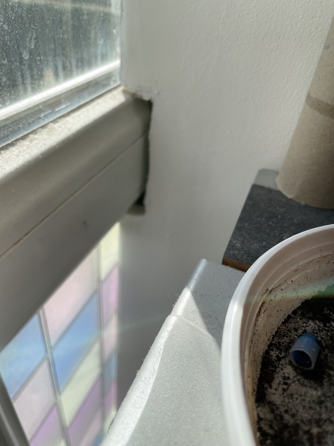 Ich würde den Bereich der Scheibe die Wand kürzen und dann nach Einbau der neuen Scheibe mit einem Streifen Styropor auffüllen.