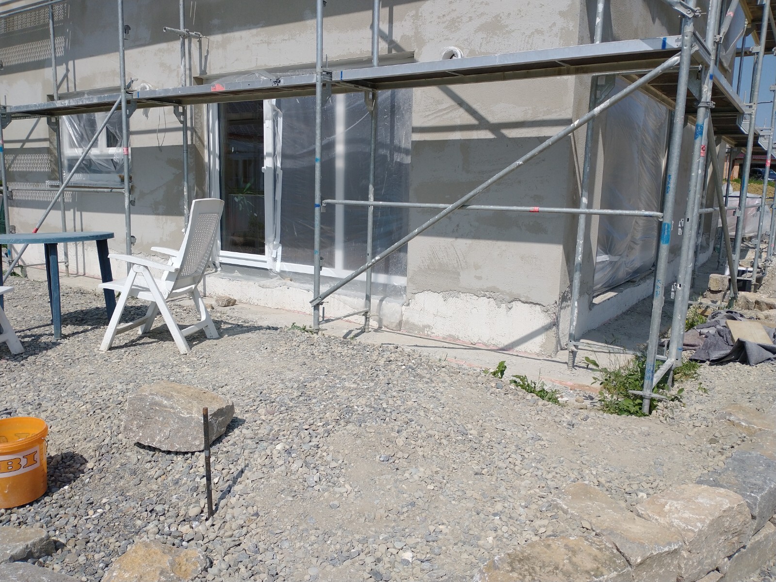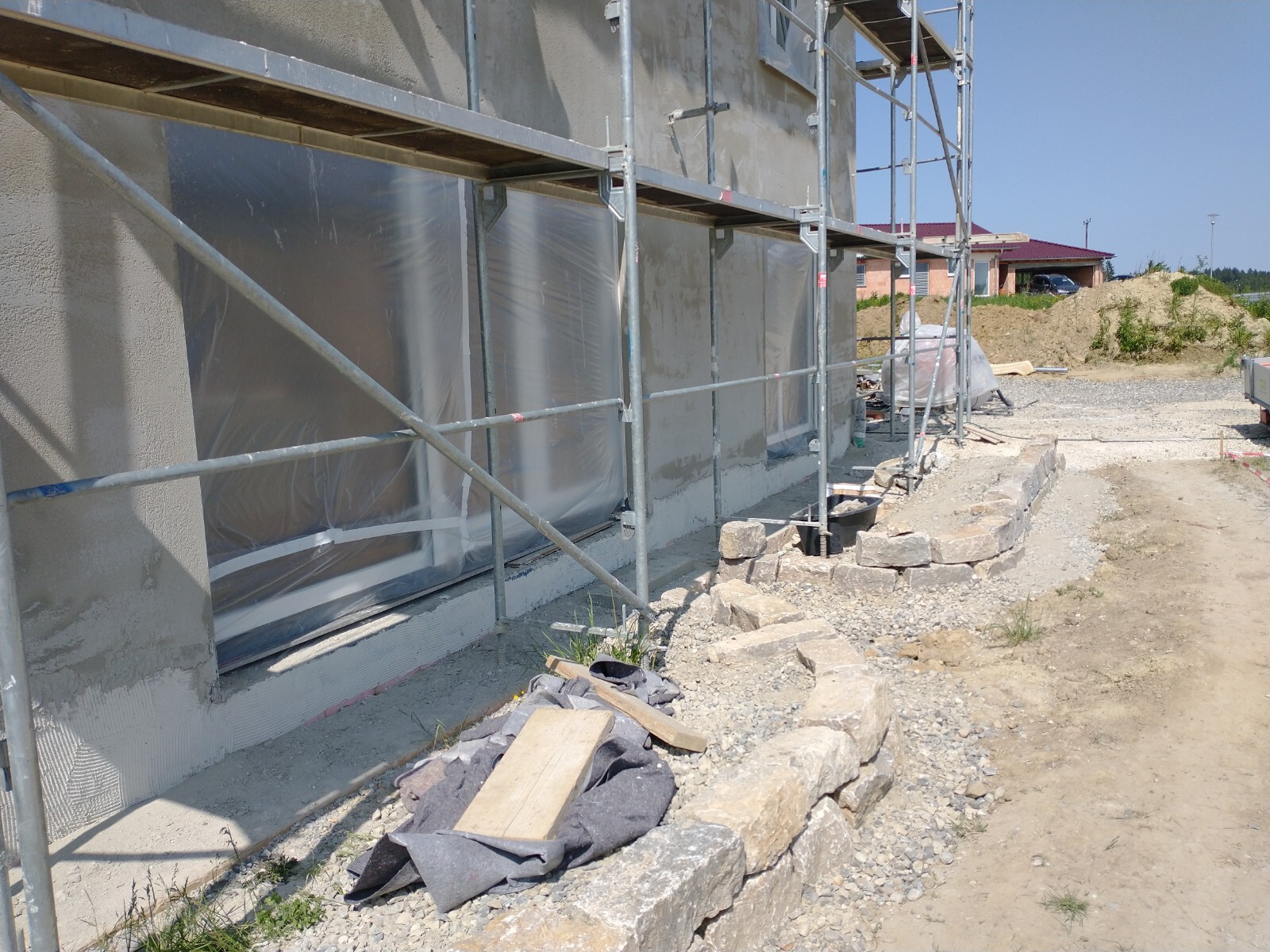 Meinst du Sockel-Dicht? Aktuell fehlt der Putz im Sockelbereich noch komplett, der wird mit anderem Material gemacht. Das kommt dann aber noch.