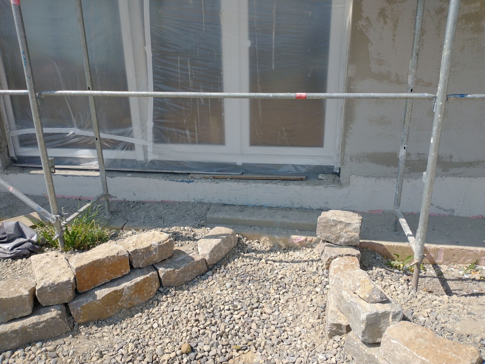 Eingang Süd: Die beiden rechten Elemente lassen sich öffnen, links ist Festverglasung. Die Mauer will ich bis an die Hauswand ziehen, dazwischen dann eine kleine Treppe