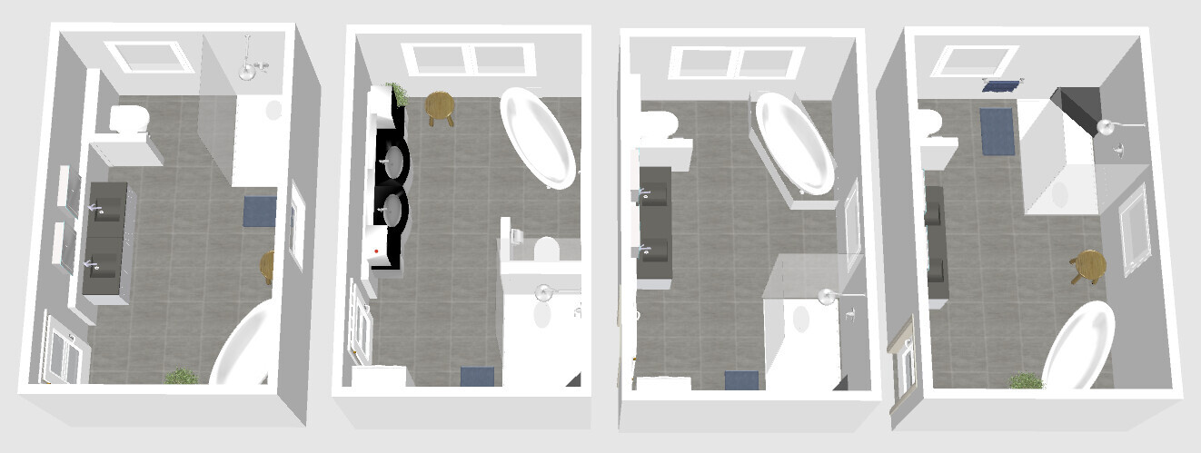 - Die Duschwanne würde ich aber vielleicht um 180° drehen und den Eingang seitlich lassen wegen dem Spritzschutz.