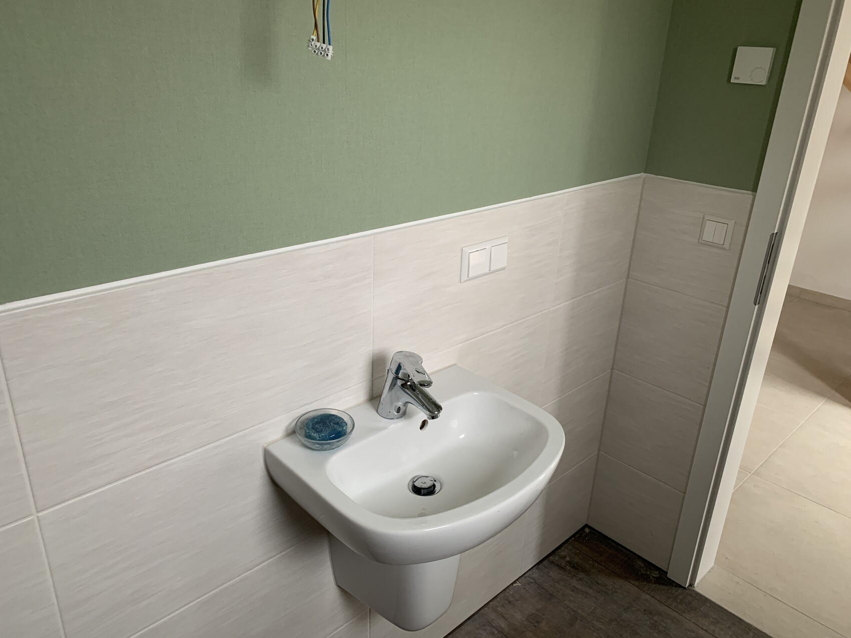 Das Gäste-WC ist fertig, nur noch nicht geputzt.Sehr schönes Grün