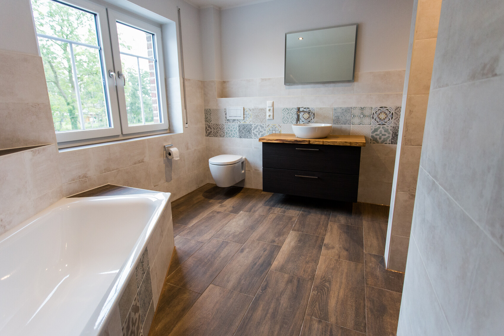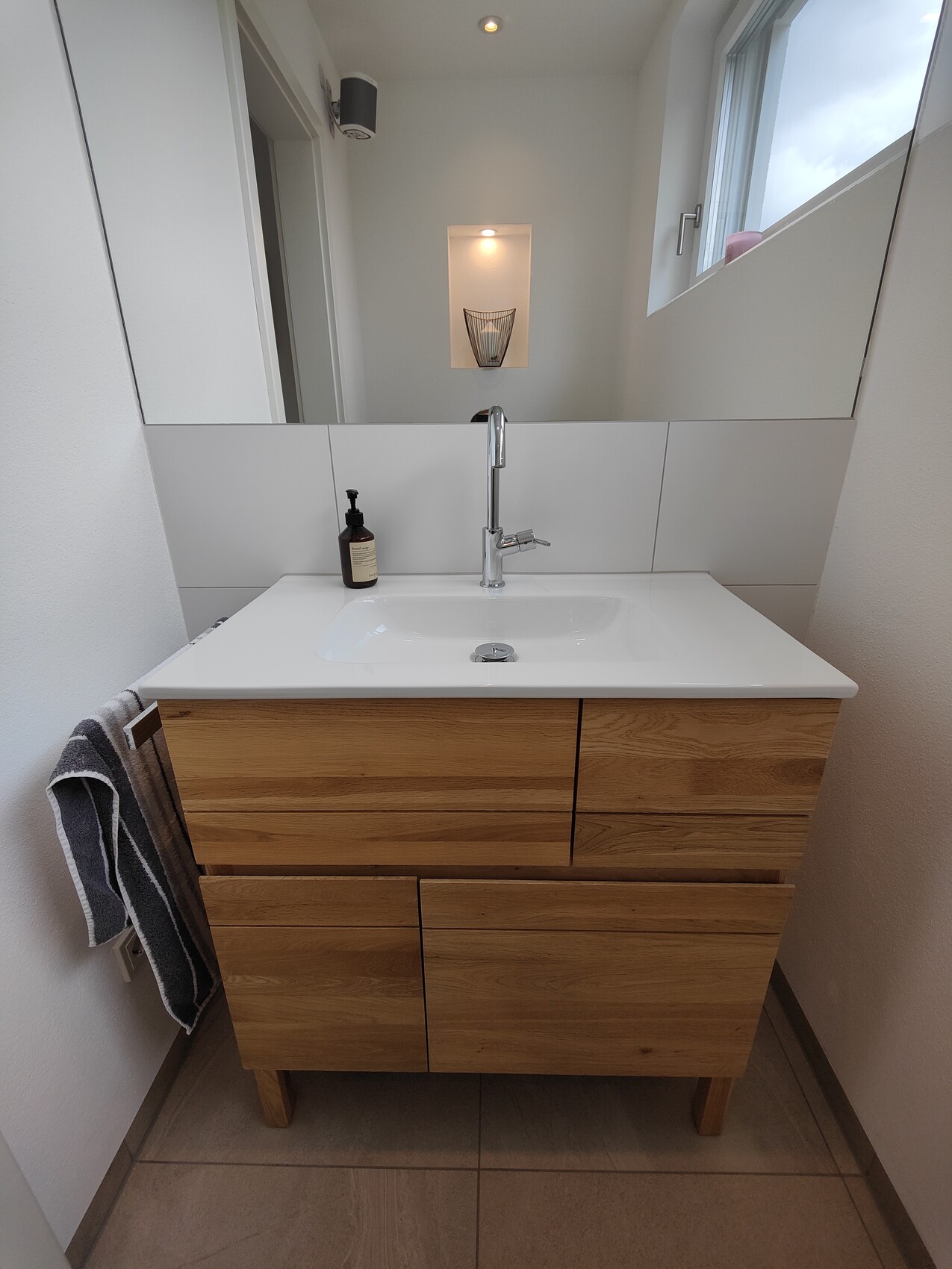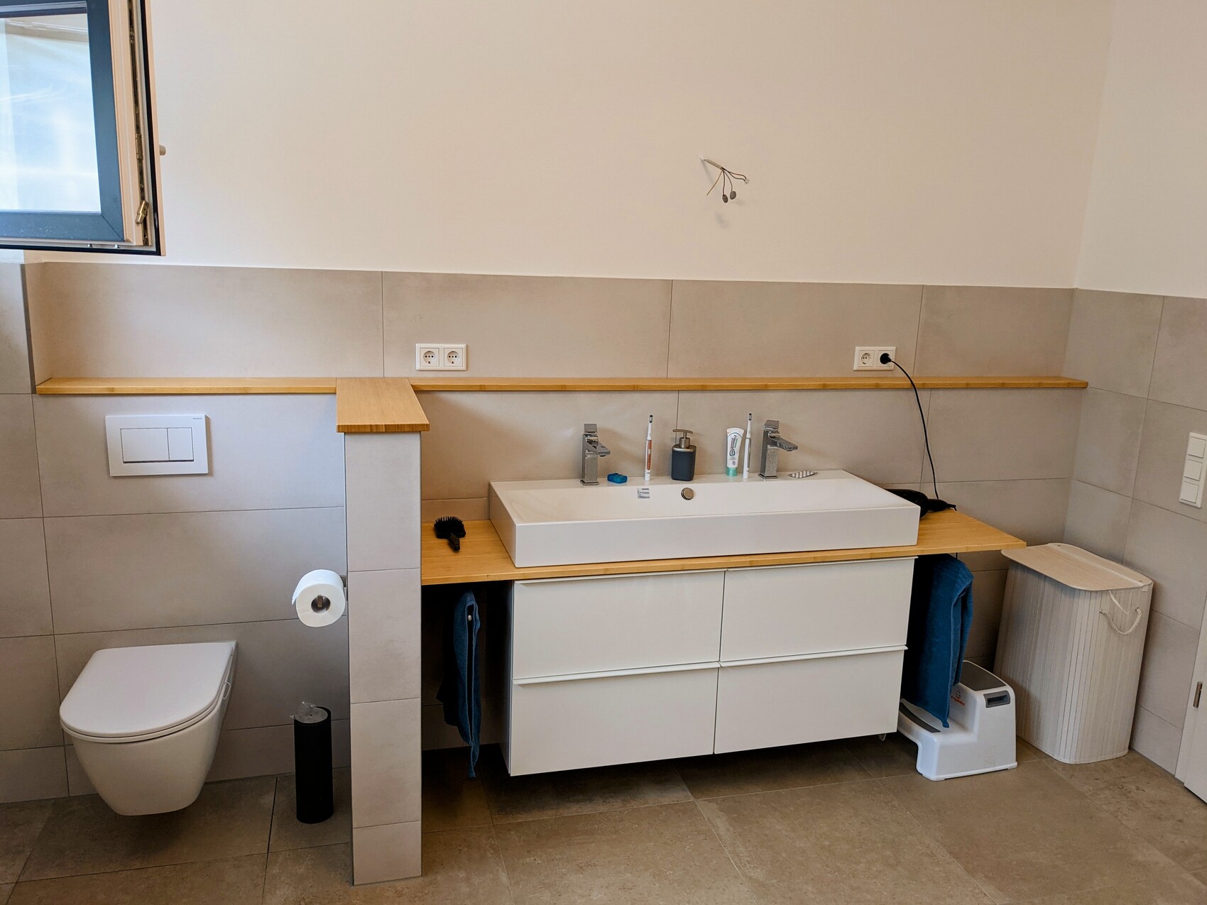 Vom Dusch-WC habe ich (noch) keine Bilder. Ist aber vom Stil identisch wie das Hauptbad, nur kleiner und ohne Badewanne.