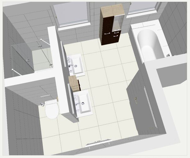 Wir haben gestern noch einiges durchprobiert. Es fehlt uns noch ein wenig an räumlicher Vorstellungskraft, wie vollgepackt das Bad hinterher tatsächlich ist, wenn man so ne Infrarotkabine noch mit rein nimmt. Wie gesagt, Grundriss ist nicht mehr änderbar, ansonsten wäre mit ner anders angeordneten Tür auch schon viel gewonnen.