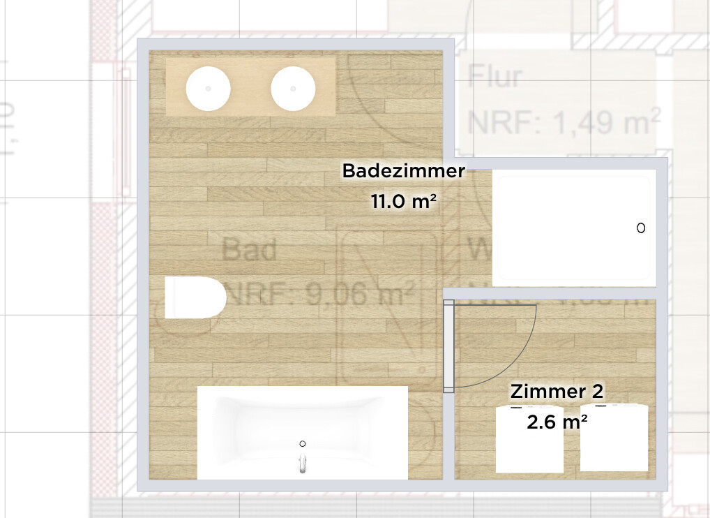 Dann kann die Zwischenwand nach planrechts rücken und ihr habt im Bad etwas mehr Platz zum puzzeln.