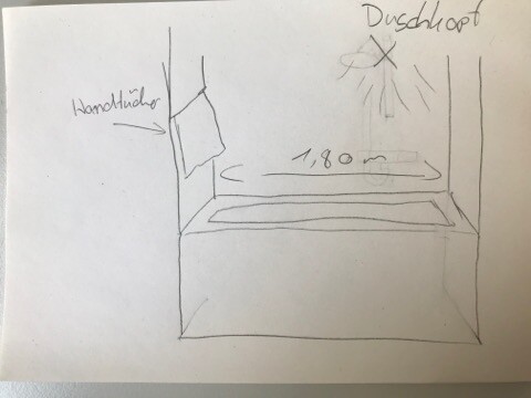 Du denkst aber schon dran, dass der Duschkopf von der Wand wegsteht und dich quasi von selbiger "wegdrängt", also nach hinten zu der anderen Wand?