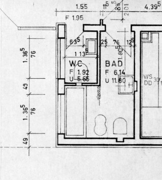 - das Badezimmer wollen wir ja zusammen legen aus dem vorherigen Gäste-WC und dem bisherigen Badezimmer. Eine Möglichkeit wäre demnach natürlich noch, die Tür vom Gäste-WC zu nutzen (diese ist schmaler) und die andere zu zu machen.