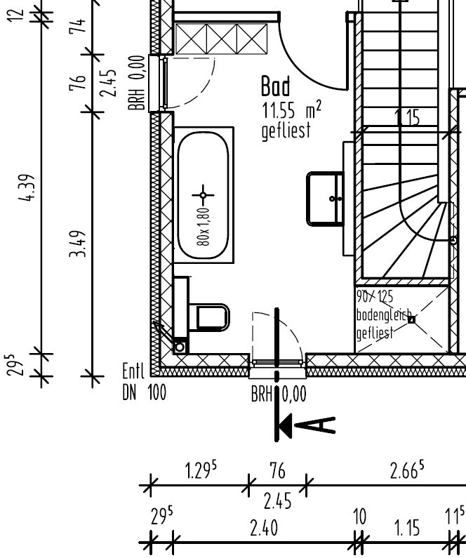 Reihenhäuser haben oft nur diese 2,40... wir hatten 2,25 mit klassischer Aufteilung. Zu zweit geht das, mit Familie würde ich auch Nadelöhre verhindern.