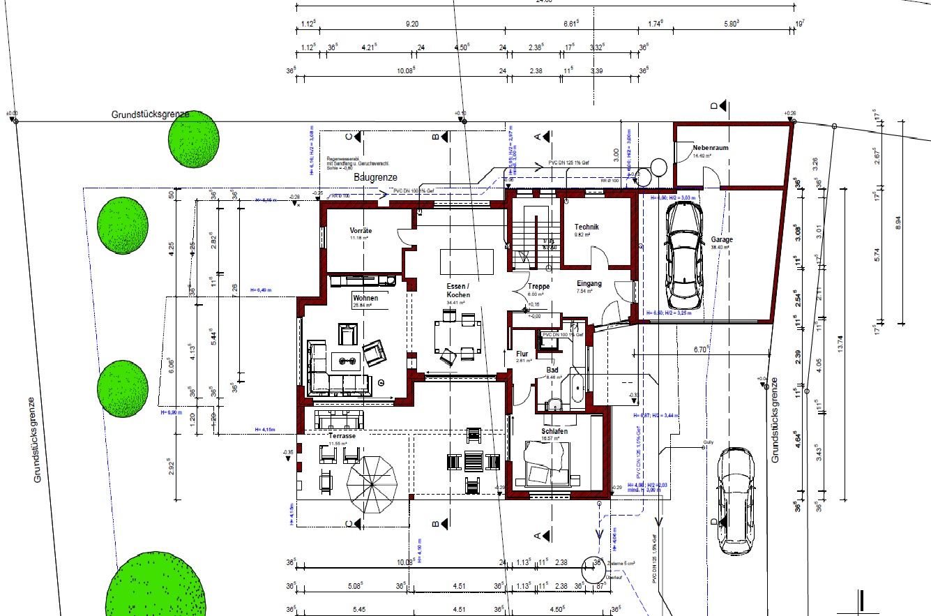 : Ich glaube modern ist aktuell quadratisch mit Walmdach (jedenfalls sind 2/3 aller Häuser in unserem Baugebiet so)... Das mit den vielen Ecken hat sich irgendwie so ergeben... Die Maurer haben auch gleich am Anfang schon geschimpft (Rohbau ist schon so gut wie fertig...) :-)