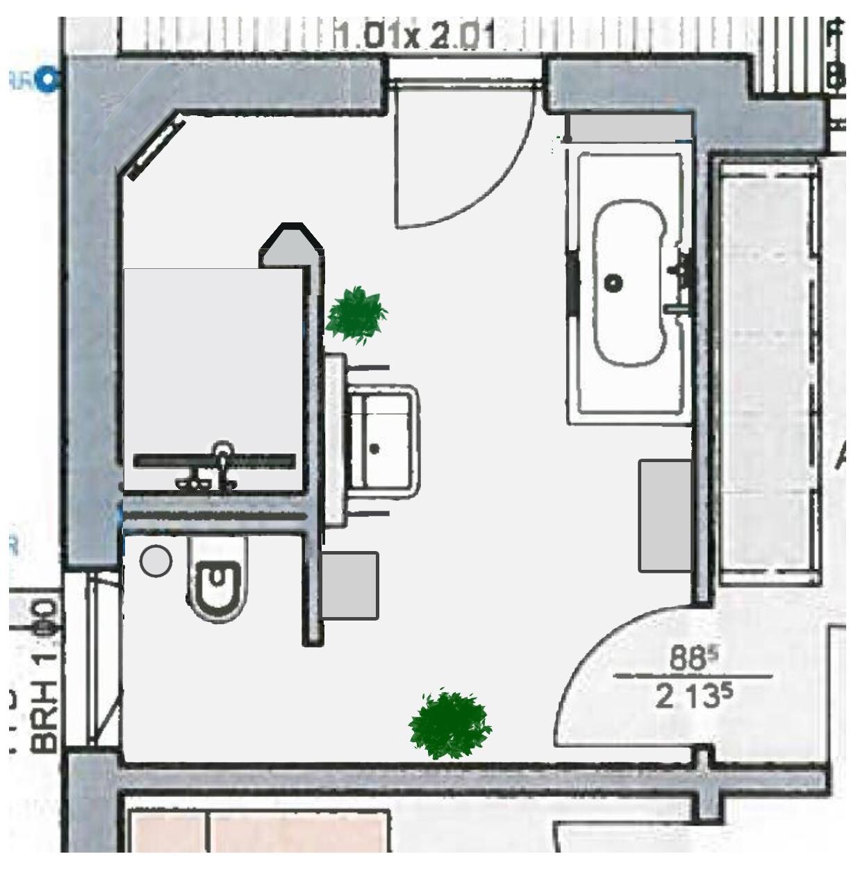 Auf der anderen Seite wäre die Frage, wenn wir dadurch ein revolutionär besseres Bad konzipieren könnten, inwiefern man diese möglichen Kompromisse eingeht. Hattest du da eine konkrete Idee für die Badgestaltung im Kopf, die nur mit der neuen Türvariante ginge?