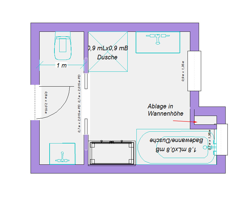 wir haben uns ein Haus gekauft und möchten nun das Bad umgestalten. Leider sind wir uns zur Zeit noch sehr unsicher wie wir den vorhanden Platz optimal ausnutzen können. Deswegen wäre ich euch für eure Rückmeldungen, Anregungen und Ideen sehr dankbar.