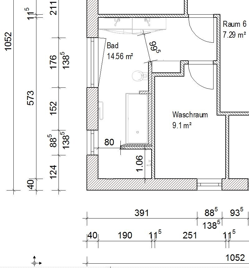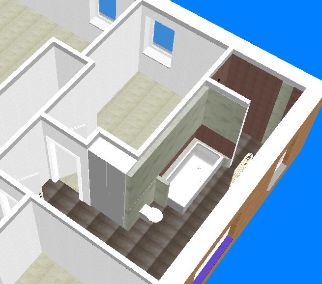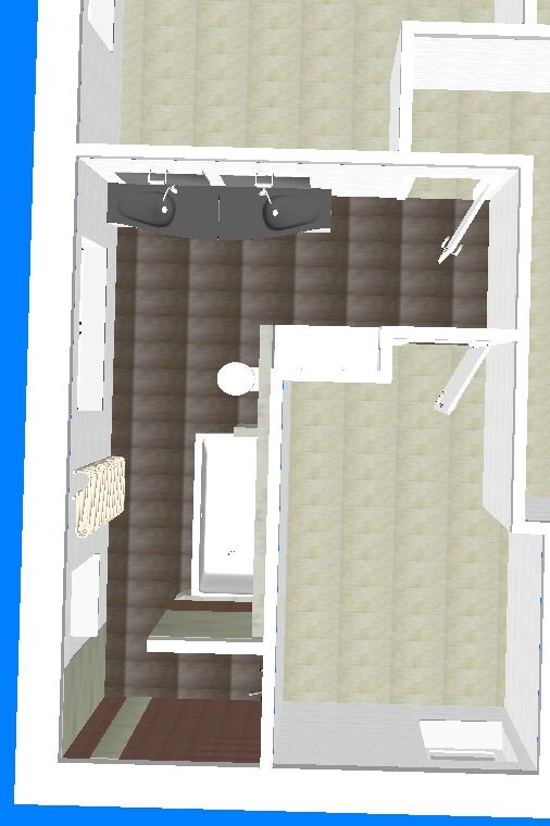Danke schon mal für die entworfene Idee und Deine Zeit - mal sehen, was meine Frau dazu sagt. Ich finde das schon mal originell. Ich vermute allerdings, dass sie (die in einem riesigen Haus mit doppelt so großen Bädern (Plural) aufgewachsen ist), das Bad dann zu beengt empfinden könnte. Ich bin gespannt!