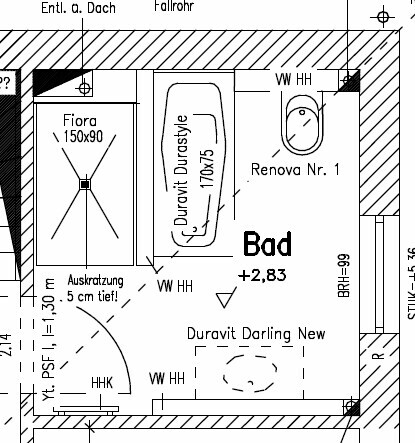 Durch die Schrägen muss bei uns die Badewanne ans Fenster.