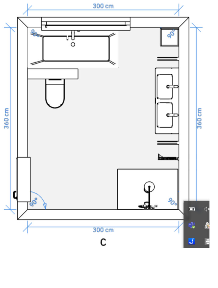 Viwaldi2526.07.22 18:10Wir sind bei den Planungen für das Elternbad, welches keine große Wellnessoase werden soll/muss, sondern eher funktional eingerichtet werden soll. Wir möchten gerne eine Badewanne in 180x75, weil mein Mann über 1,90m groß ist. Zudem haben wir eine bodentiefe Dusche in 120x90 eingeplant mit Glasabtrennung und mein Mann möchte gerne einen doppelwaschtisch oder zwei einzelne nebeneinander, aber auf jedenfall zwei Waschbecken. Die Fallrohre für die Entwässerung werden an der Stelle mit dem roten Punkt verlaufen. Idealerweise wäre also die Toilette auf der Seite, sonst müssten wir entsprechend dicke Rohre in den Boden einarbeiten lassen.