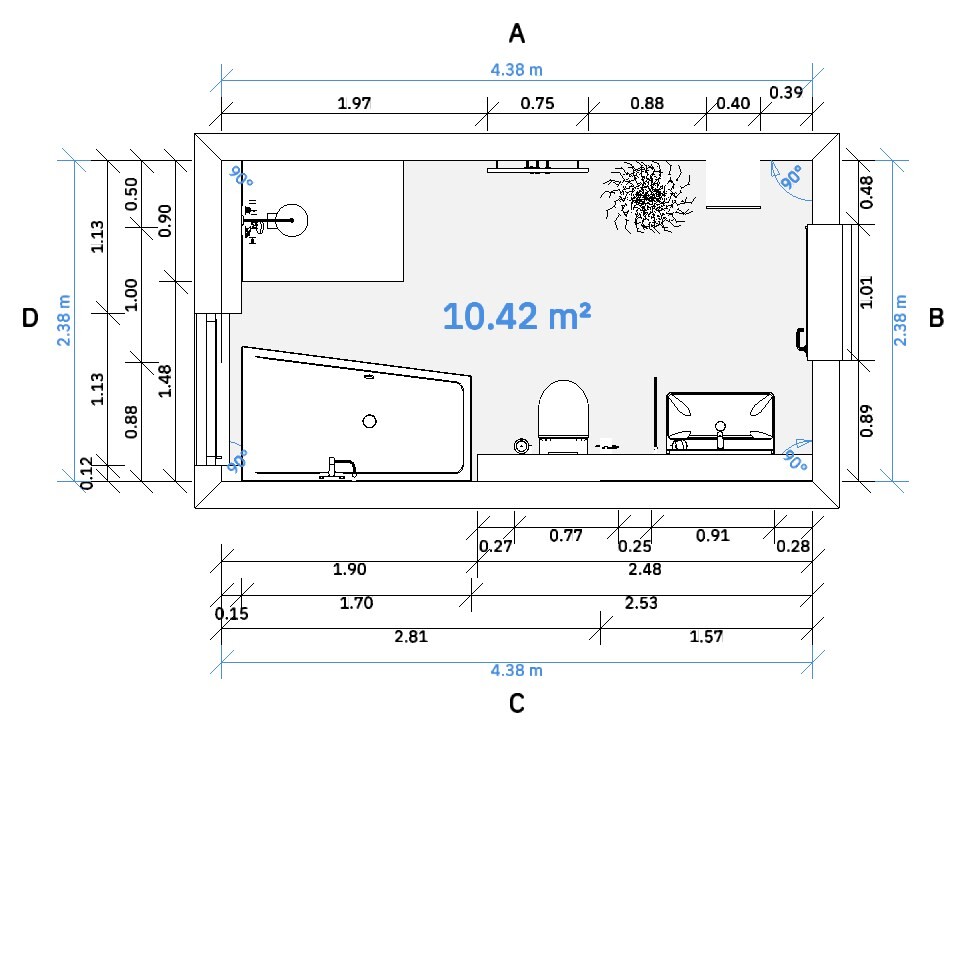perfekt, vielen Dank! Das ist es. Ich habe die Tür nur noch etwas versetzt, Richtung Dusche öffnend, damit man noch Lichtschalter platzieren kannSicher das der Lichtschalter im Bad ist? Bei mir ist er außen. Wahrscheinlich wegen Feuchtraum?! Eventuell drüber nachdenken die Türe nicht in den Raum aufgehen zu lassen, sondern nach außen. Habe ich auch so, da sonst die Türe im Raum gegen die Glasduschwand knallen würde , wenn mal doch etwas mehr Schwung hat. Je nach dem wie es vorm Bad aussieht in dem Bereich.