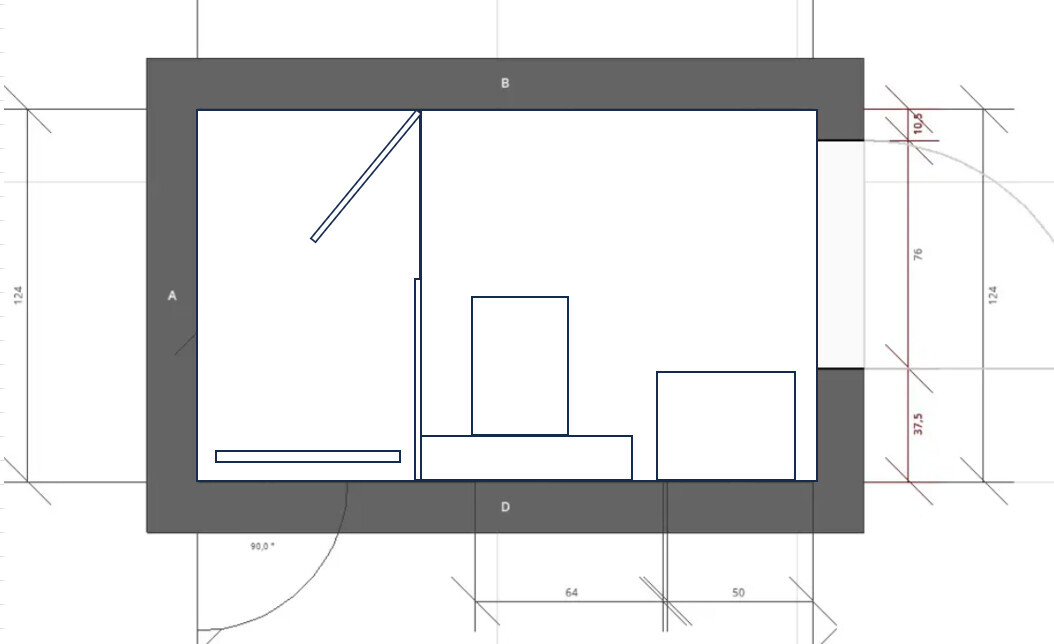 Ich würde die Dusche nur 80 cm breit herstellen. Vormauereung nur im Bereich vom WC sonst passen keine Standard Glaselement.