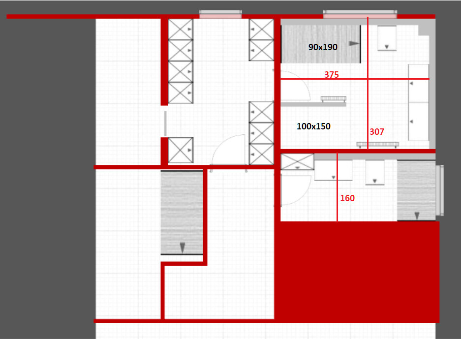 Der Trick sind eigentlich die Türpositionen für Schlafzimmer, Ankleide und Bäder passend zu finden. Ich weiß auch nicht, wie dick die Vorbauwand ist, habe 15cm genommen.
