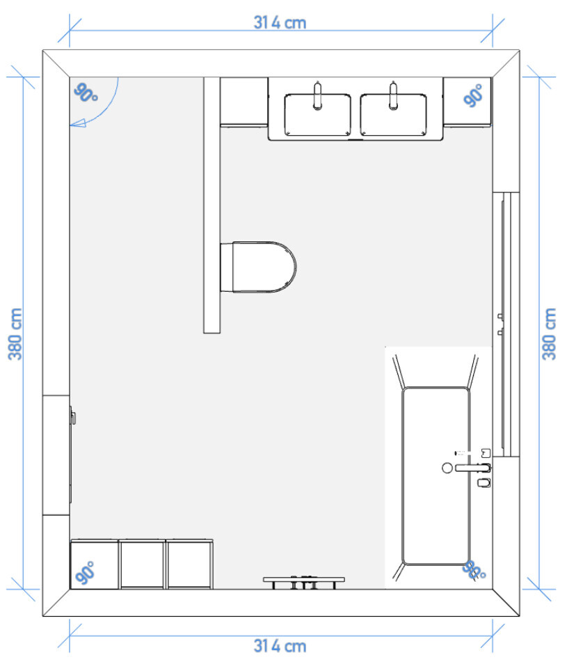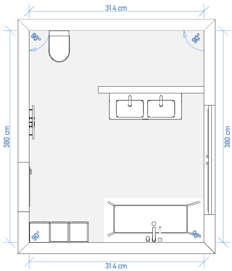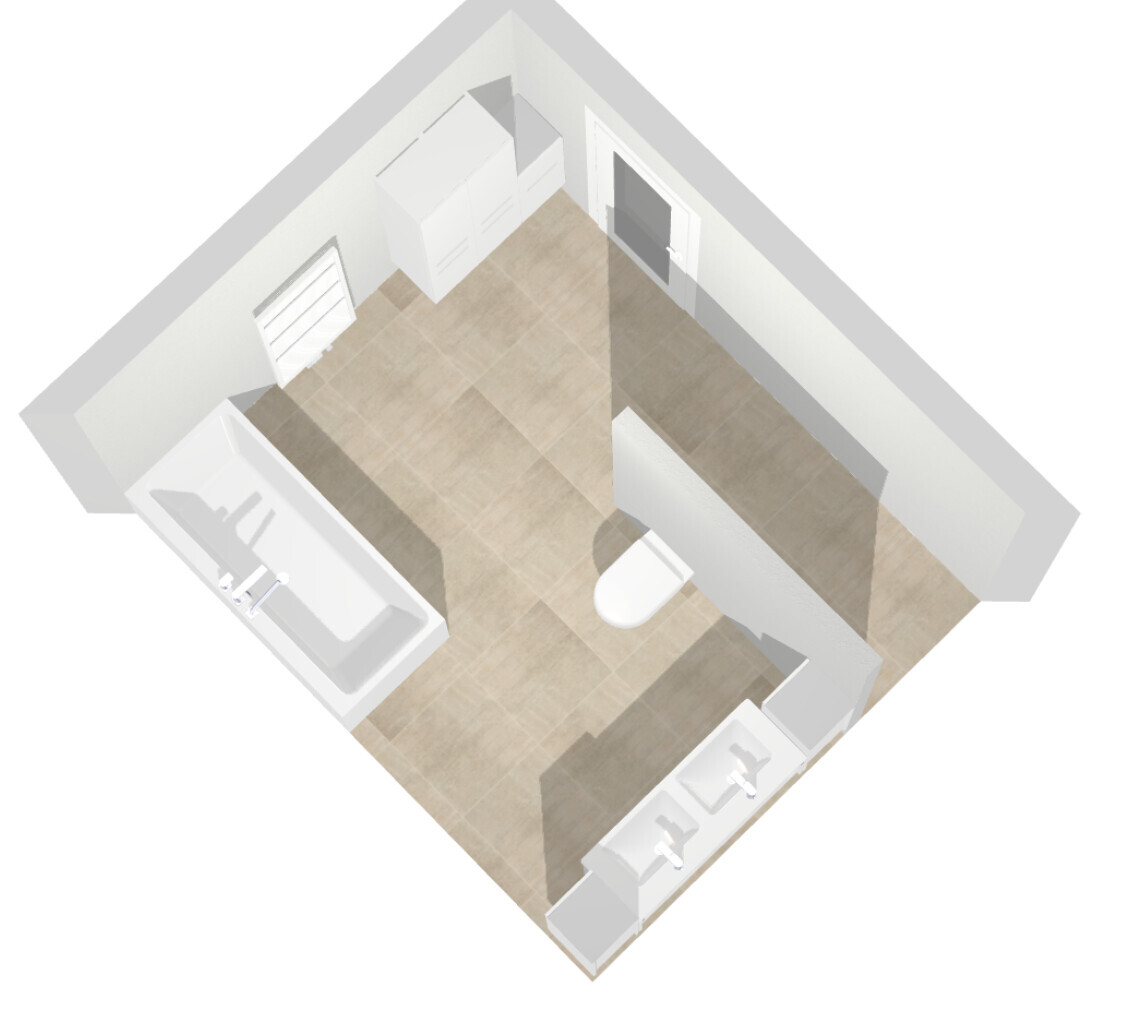 Ansonsten möchten wir genügend Platz um alle Badobjekte haben und zusätzlich noch etwas Fläche für einen Schrank oder Regal. Genau das war bei den bisherigen Entwürfen aber nicht wirklich gegeben, sodass wir die neuen erstellt haben.