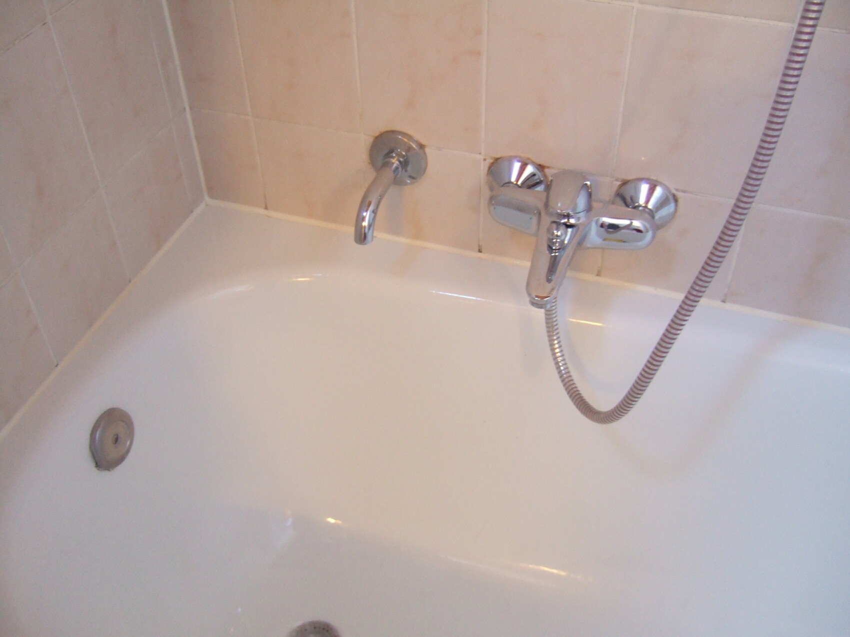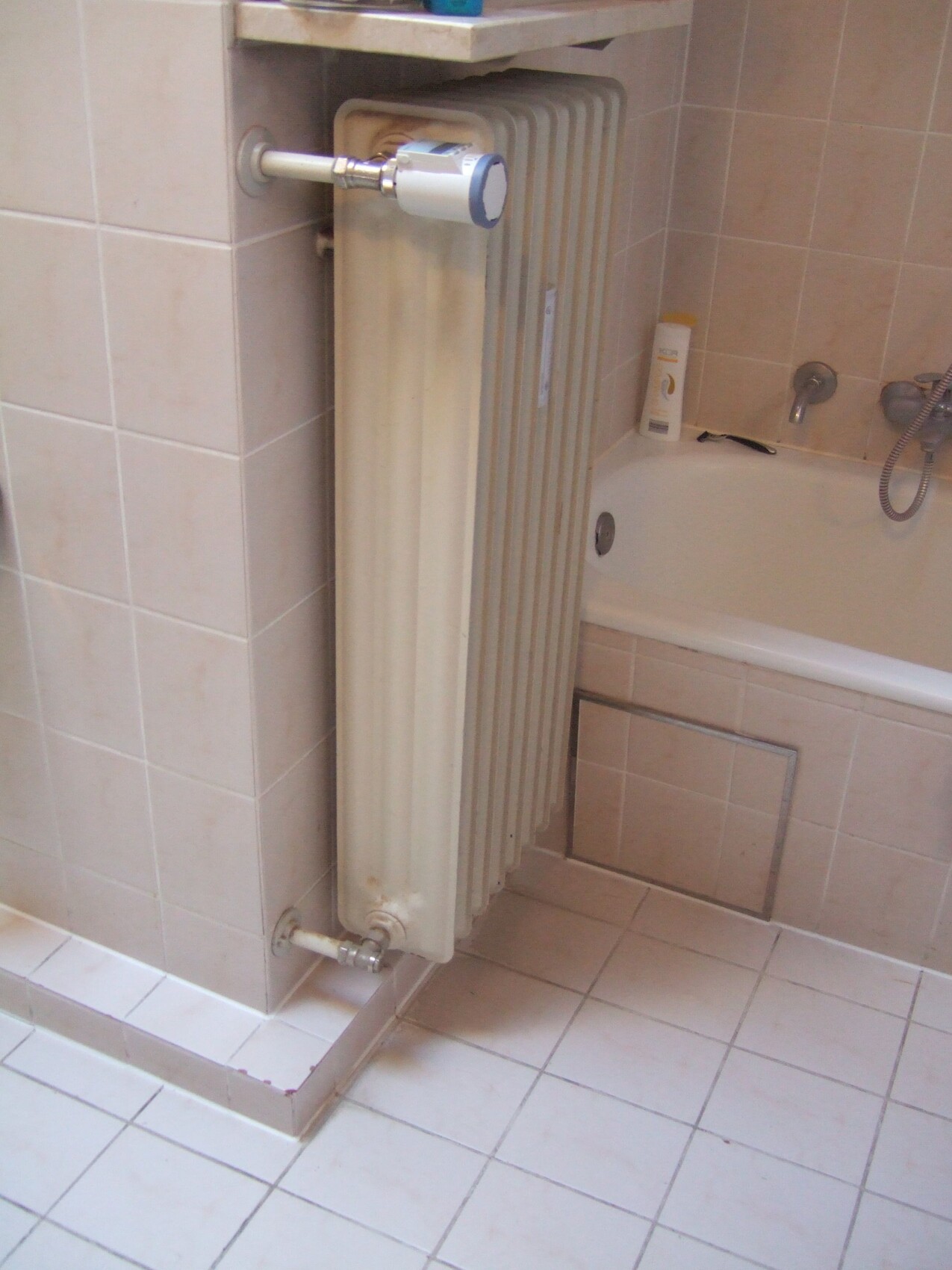 Außerdem kommt an der Badewanne ein merkwürdiges Wasserrohr aus der Wand: