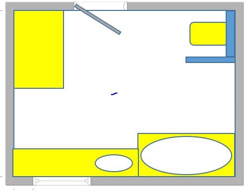 - Toilette - wäre wohl am leichtesten am Kniestock planrechts unterzubringen, da hier die Unterbringung des Unterputz-Spülkastens am natürlichsten wirkt