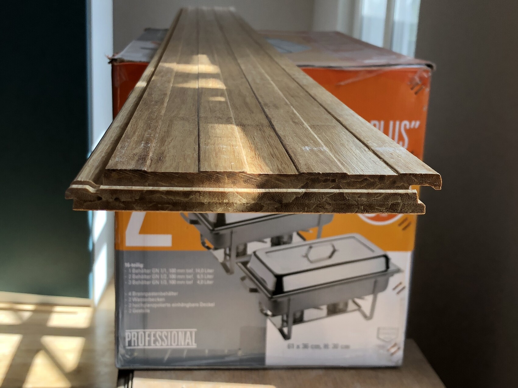 ich bin neu in diesem Forum und muss ich direkt mit einer untypischen Fragen nerven. Ich habe aus einem Restposten eine große Menge an Bambus-Parkett, das ich in mehreren Räumen meines Hauses verlegen möchte. Leider fehlt für 1 Raum etwa 1 Packung des Parketts. Das Problem ist nun, dass auf der Verpackung und den Parkett keinerlei Informationen vorhanden sind, die auf den Hersteller o.ä. schließen lassen. Auf der Verpackung steht lediglich der Schriftzug "BAMBUS Parkett & Bodenbelag Naturbelassen & Wertvoll". Da ich mittlerweile recht verzweifelt bin, habe ich gehofft, dass evtl. jemand aus diesem Forum diese Verpackung kennt und mir einen Tipp geben kann, wer dieses Parkett produziert. Ich habe einige Fotos der Verpackung der Bretter angehängt. Es wäre wirklich klasse, wenn jemand einen Tipp hätte.