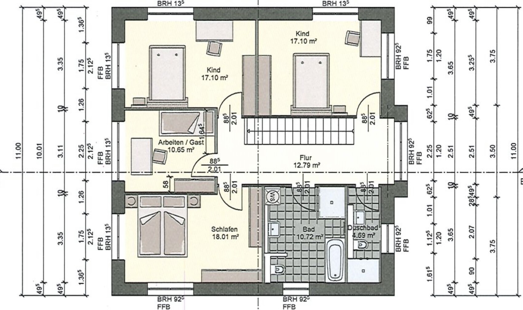Derzeit haben unsere Kinder Hochbetten, deswegen sind sie so gestellt. Der Möblierungsvorschlag ist einer von mehreren, es gibt aus meiner Sicht ein paar sinnvolle Optionen. Bei dem Fenster bin ich ganz bei dir. Es hätte Vor- und Nachteile das Fenster mehr zur Ecke zu bewegen, sowohl im OG als auch im EG. Das kläre ich noch mit einer befreundeten Innenarchitektin ab. Die Fenster könnten wir noch ein wenig verschieben, falls das für die Einrichtung Vorteile bringt. Bei der Symmetrie würde ich außen auch abweichen, aber die Fenster sollten übereinander nicht versetzt sein. Das finde ich optisch immer eigenartig und wenig ansprechend.
