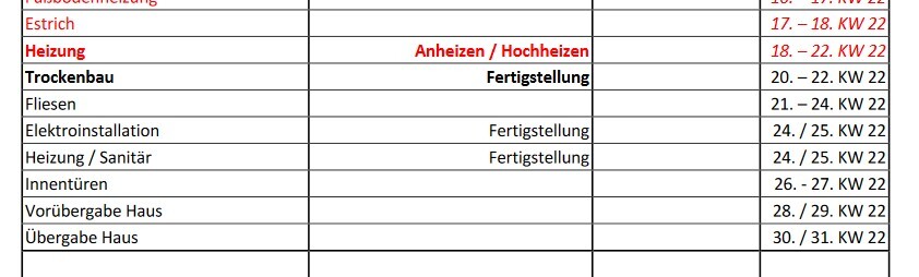 Wir haben uns damals Puffer eingebaut und 1,5 Monate auf diesen Termin aufgeschlagen. Einen halben Monat Verzug hatten wir - und das war nur die "gute alte Coronazeit". Heute würde ich mir mehr gönnen, um mich wohl zu fühlen.Ist bei uns auch ungefähr. Wobei wir keine Eigenleistungen haben.