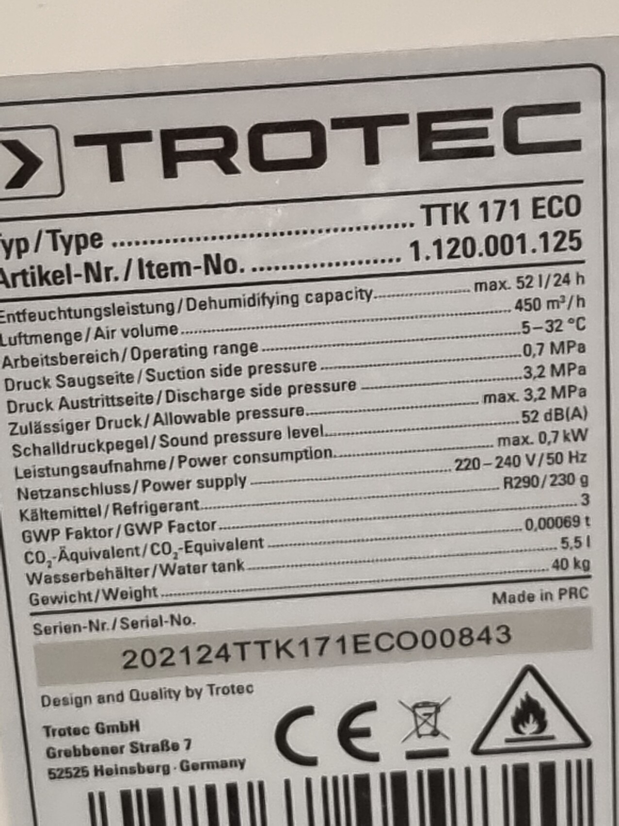 Hier Mal die Daten von den Trocknern. Wenn ich richtig gelesen habe, wären das ca. 100 KW also 35 € je Tag.Du hast mit dem Heizprogramm ein definiertes Aufheizprotokoll gestartet.Iwann kommt die Feuchtigkeit langsamer aus dem Estrich und der Putz ist auch schon trocken.