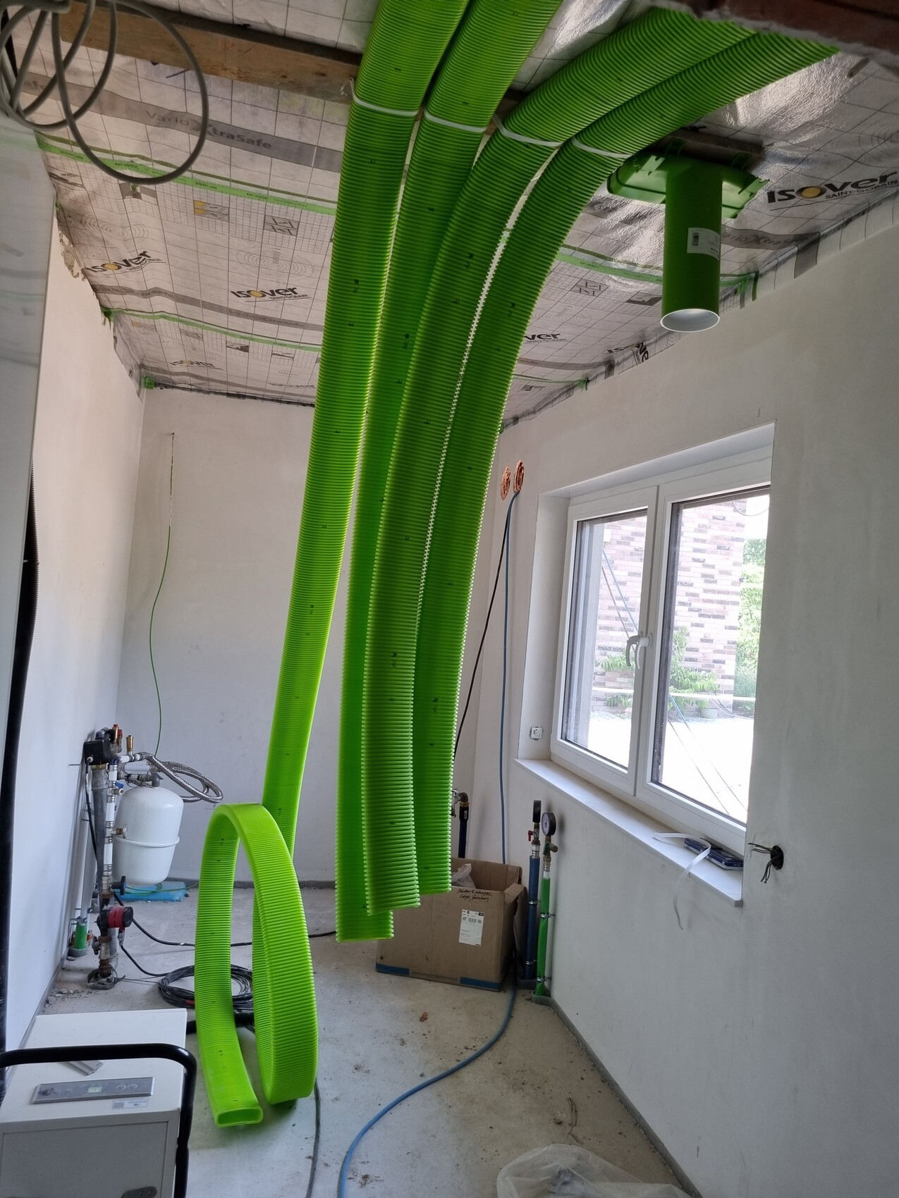 Heute wurde mit der Verlegung der Kanäle der Kontrollierte-Wohnraumlüftung begonnen.