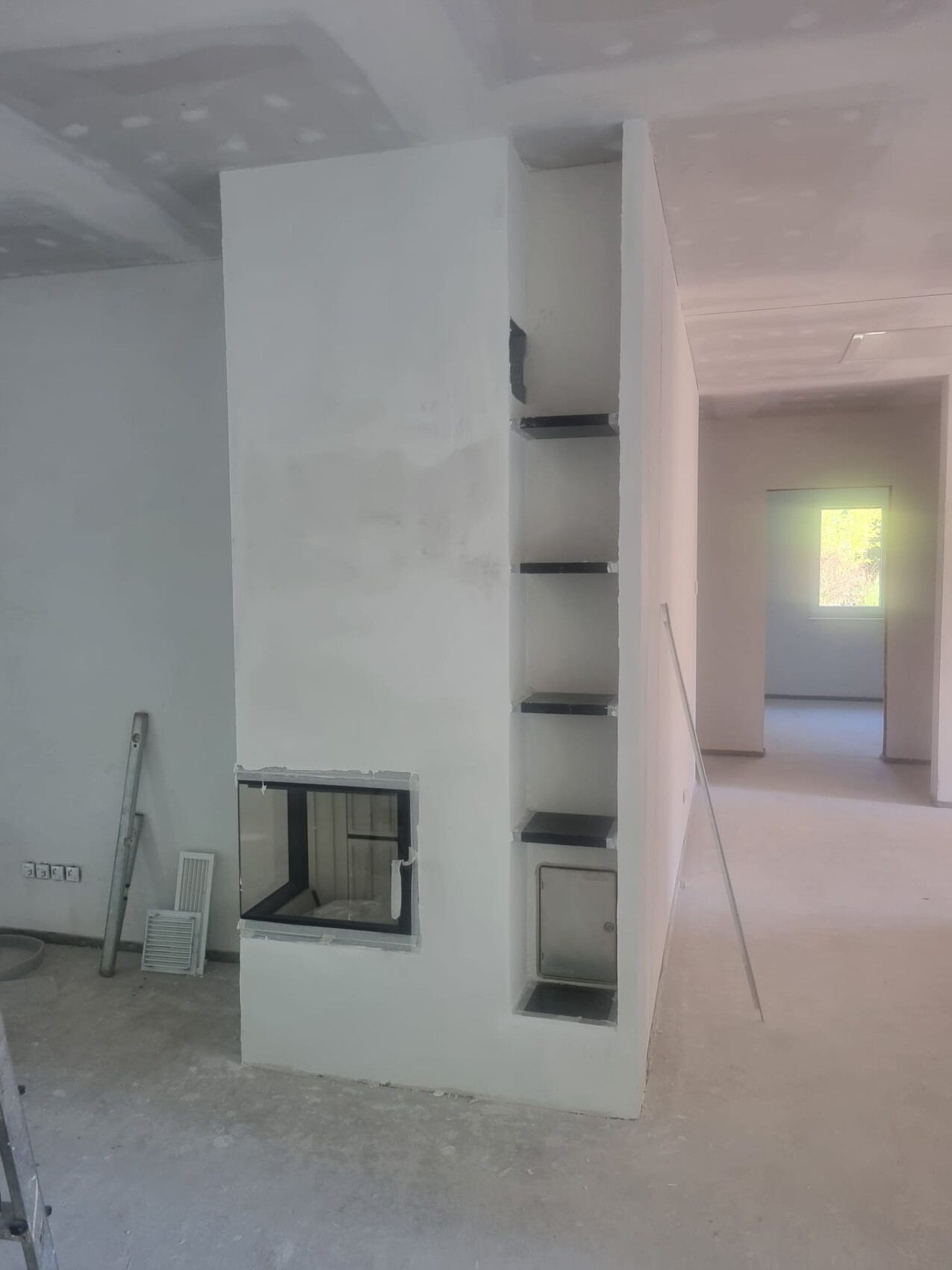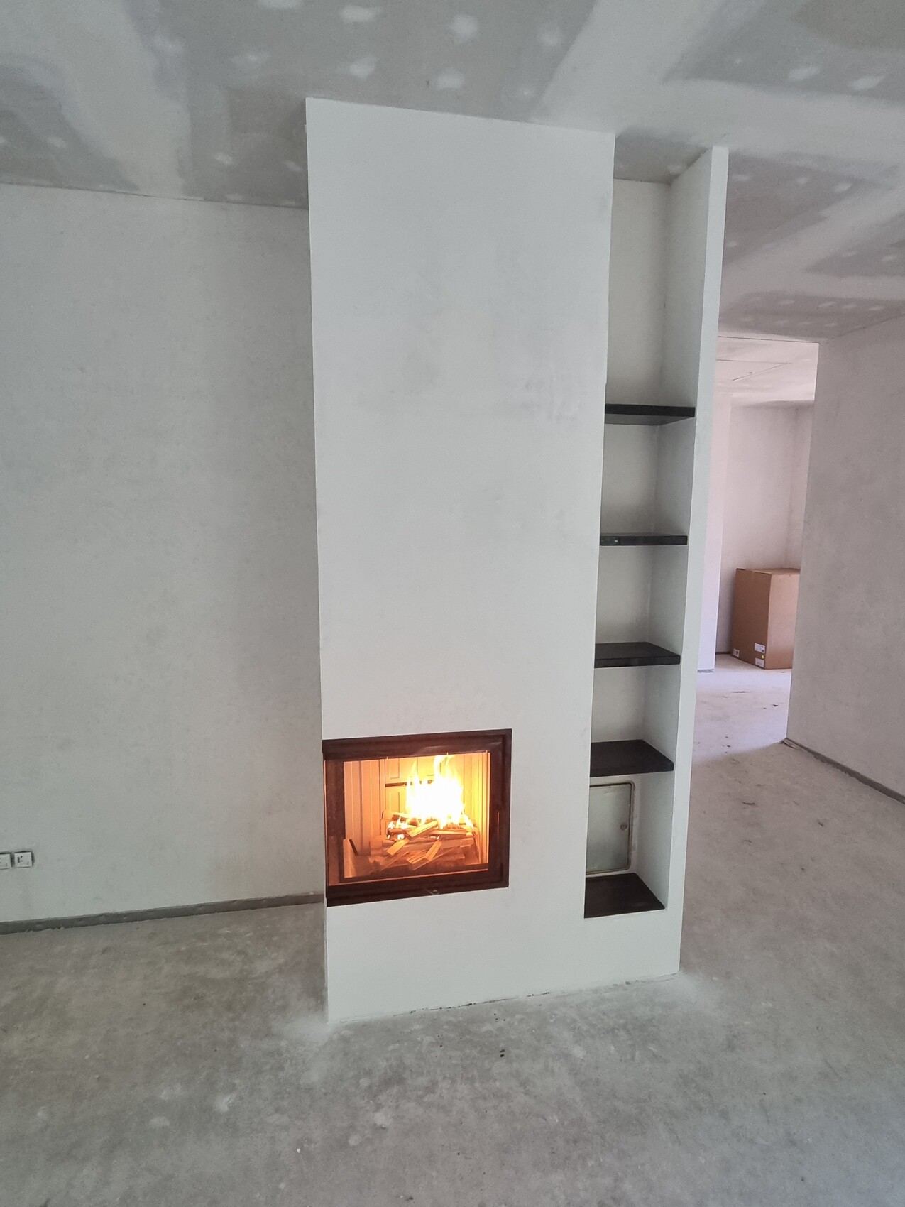 Neubau202203.08.22 09:56Kamin ist soweit fertig. Der Elektriker muss noch den Wärmefühler an Strom anschließen. Im Garten wird alles umgebuddelt und Flächenkollektoren sowie die Leitungen (Wasser und Strom) in den Garten verlegt.