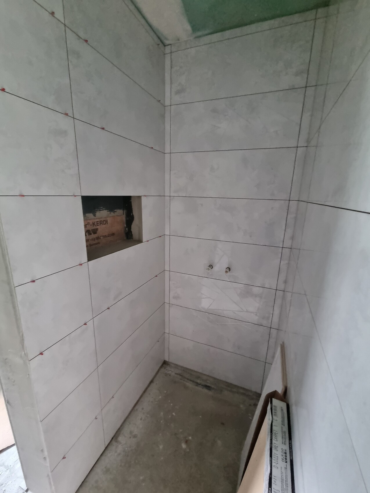 Und bei den Fliesen hätte man bisschen auf die Größe achten müssen, dass keine 5cm streifen entstehen, aber dafür sieht es gut gefliest aus.