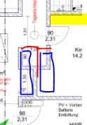 - Schlafen+Ankleide sind mit knapp 20 m² eigentlich ausreichend. Bei dieser Ein-/Aufteilung mangelt es jedoch an Wandfläche für Schränke. (Wie soll die Ankleide belegt werden? nur die 3,11 m, L oder komplett U?)