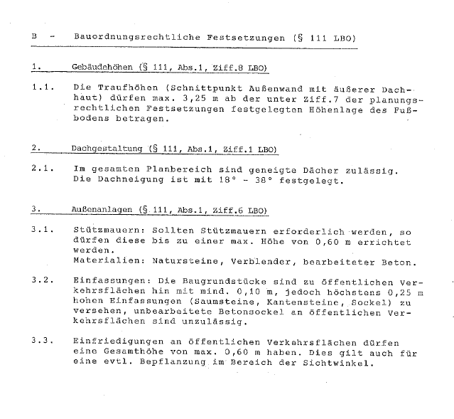 Der Bebauungsplan scheint ja irgendwie nicht so Ernst genommen zu werden. Dann ist ja Alles gut. Frag doch beim Bauamt nach ob Deine SM und Boeschung genehmigungsfaehig ist. Aber ich wuerde mich nicht trauen mit 45 Grad ins Rennen zu gehn. Fuer die Boeschungen an der Strasse sind z.B. meine ganannten 1:2 gefordert.Ist ein alter Bebauungsplan. Firstrichtung war kein Problem zu drehen.