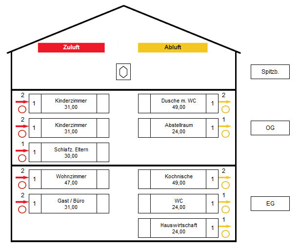 und endet spätestens bei der Inbetriebnahme und Einregulierung der erf. Luftmengen in der Erkenntnis das das so nicht richtig sein kann.