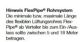 Zehnder gibt diese Werte pauschal für 75mm rohre an. Die mindestlänge ergibt sich aus den Schallschutz AnforderungenMoin nochmal