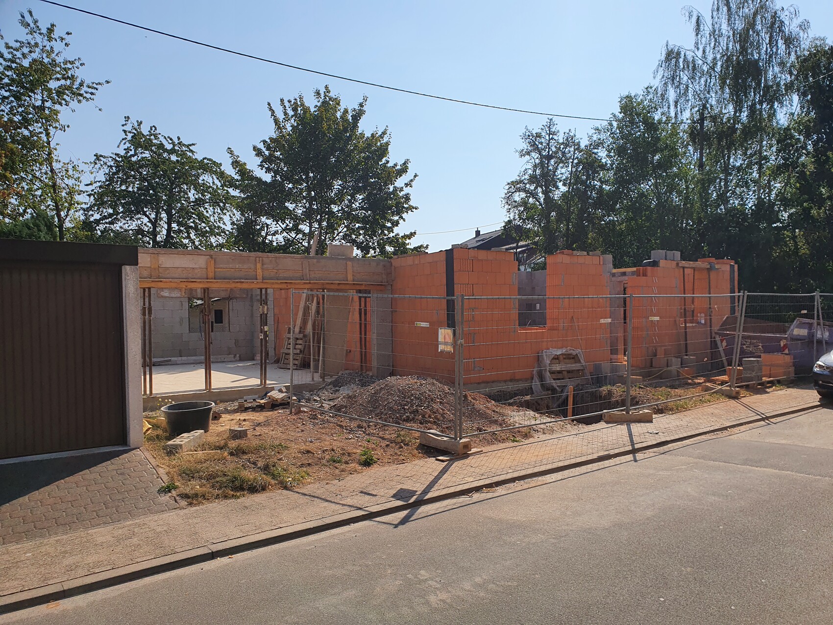 Schau dir die Vordächer von Gutta an. Das ist Aluverbund Material. Extrem leicht (Vordach 35kg mit 2m breite) und einfach zu befestigen. Ein dazu passendes Seitenteil gibt es auch!Ich denke so werden wir das machen. Das ist ein gute idee.Am Donnerstag soll endlich die Decke kommen. Stahlträger für die Garage wurden bereits geliefert und müssen noch auf Position versetzt werden.