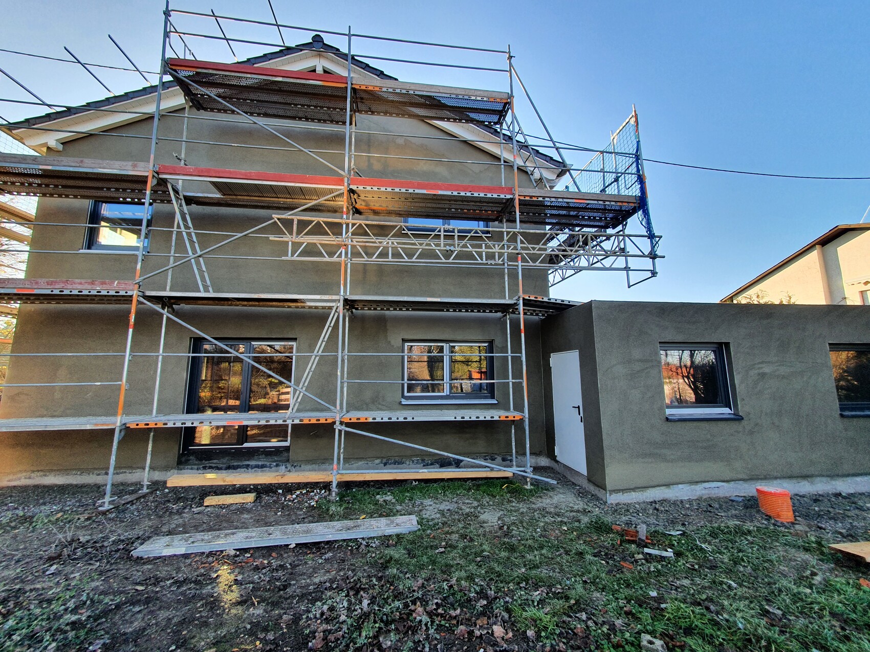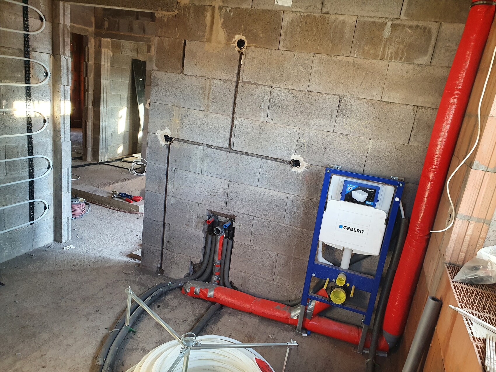 Unterputz ist drauf. Haustechnik und Elektro auch soweit fertig. Jetzt ist nur die Frage wann der Innenputz kommt. Leider habe ich erst eine Zusage zum 4.1