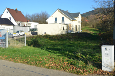 Wo auf dem Foto das zweite Auto steht, beträgt die Geländehöhe 214,84 m üNN. Dieser Weg wird natürlich noch gepflastert und dann kommen ca. 10 cm dazu, wir werden dann also 214,94 m üNN.haben. Auf dieser Höhe weiter rechts wäre nach der Planung Ihres Architekten die Höhe des Fertigfußbodens 214,54 m üNN.