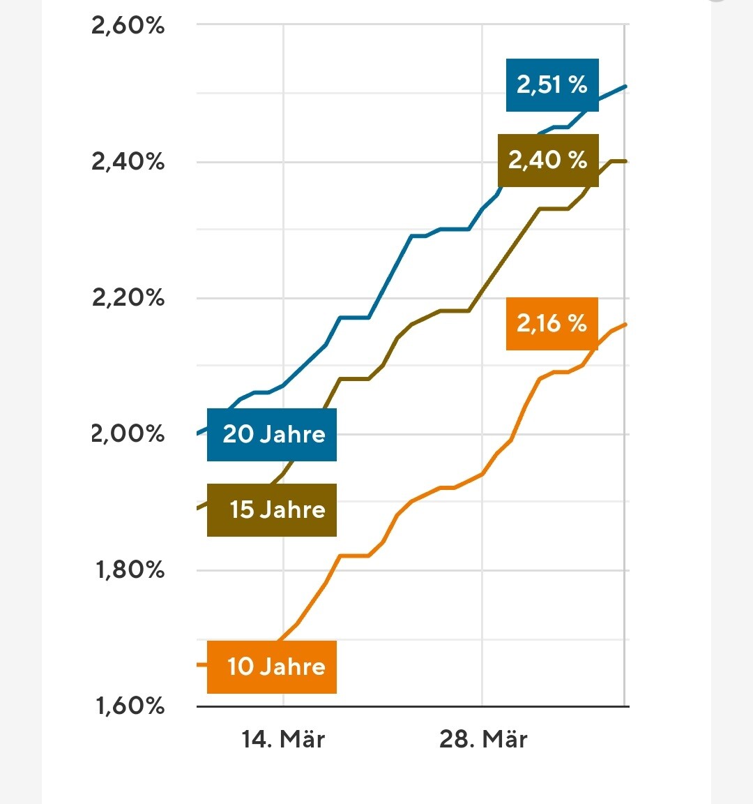 GDSteht da nicht AB 2,0%* (*2/3 aller Kunden zahlen einen höheren Zinssatz)? Ich kann mir nicht vorstellen dass man derzeit noch diesen Zinssatz für 20 Jahre bekommt. Da sehe ich die 2,3% noch realistischer. Die Zinsen steigen mittlerweile wöchentlich.