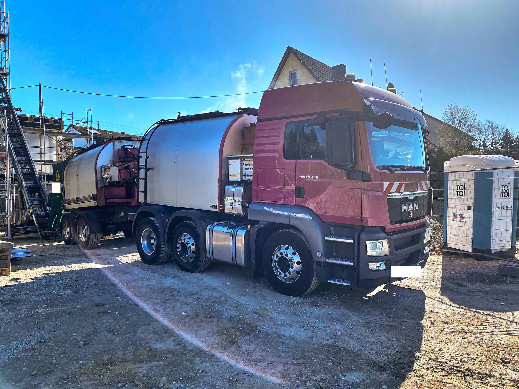 Mitgebracht wurde auch gleich der Schrägaufzug und der erste Lkw mit Asphalt.