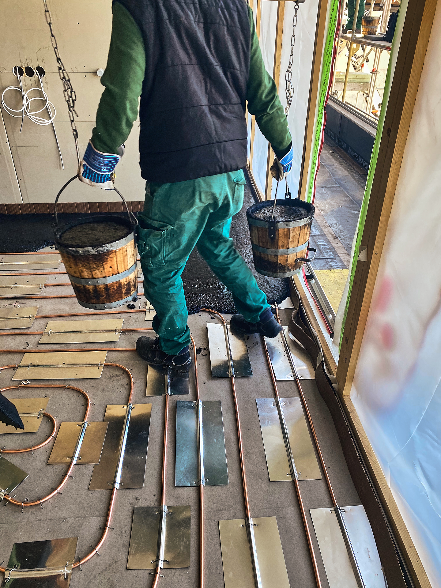 Aktuell handelt es sich um die erste Lage um die Installation am Boden zu verkleben.