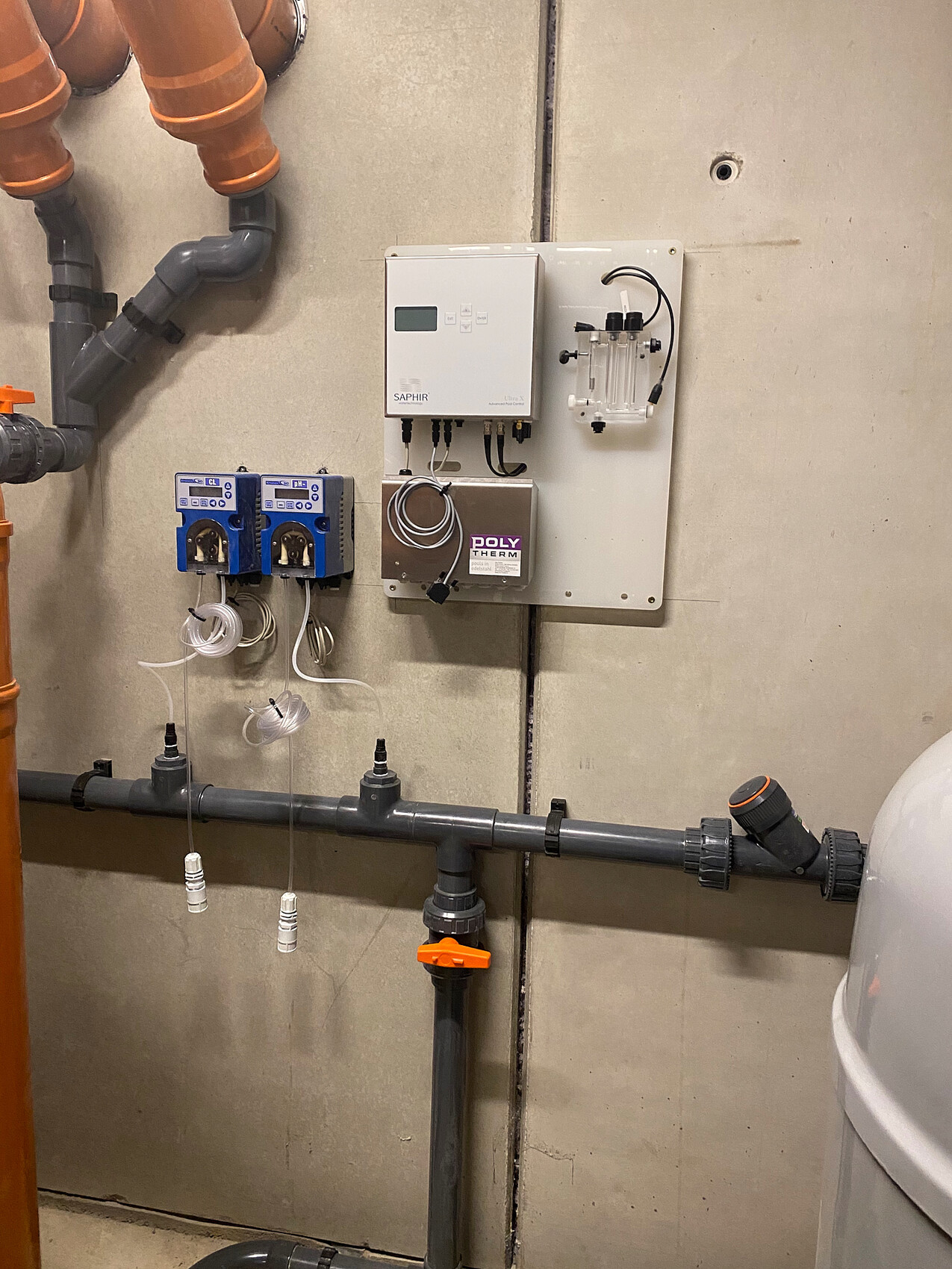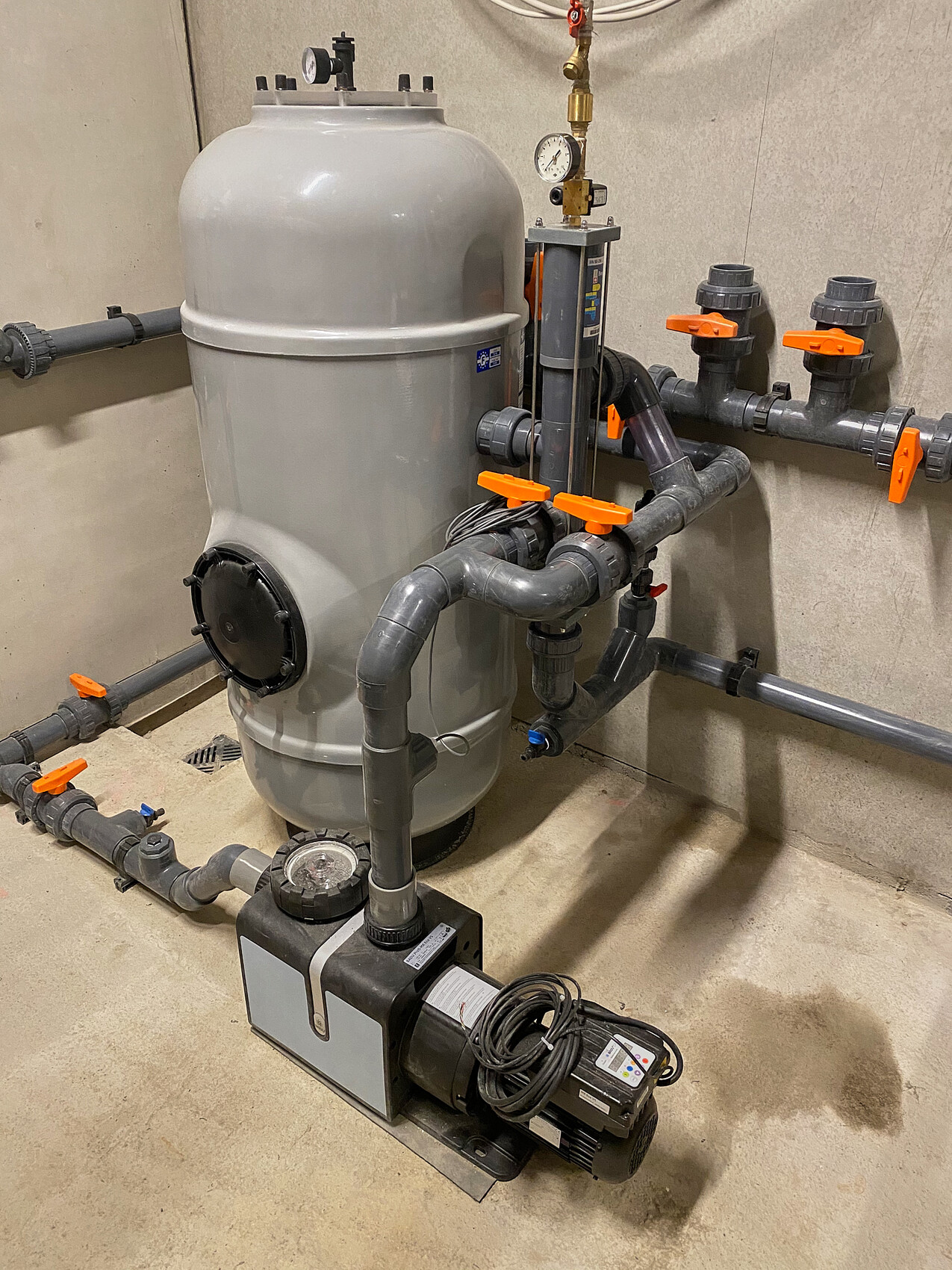 Die Technik ist bereit auch verrohrt. Fehlen noch der elektrische Anschluss sowie an die Heiz-/ Klimatechnik.