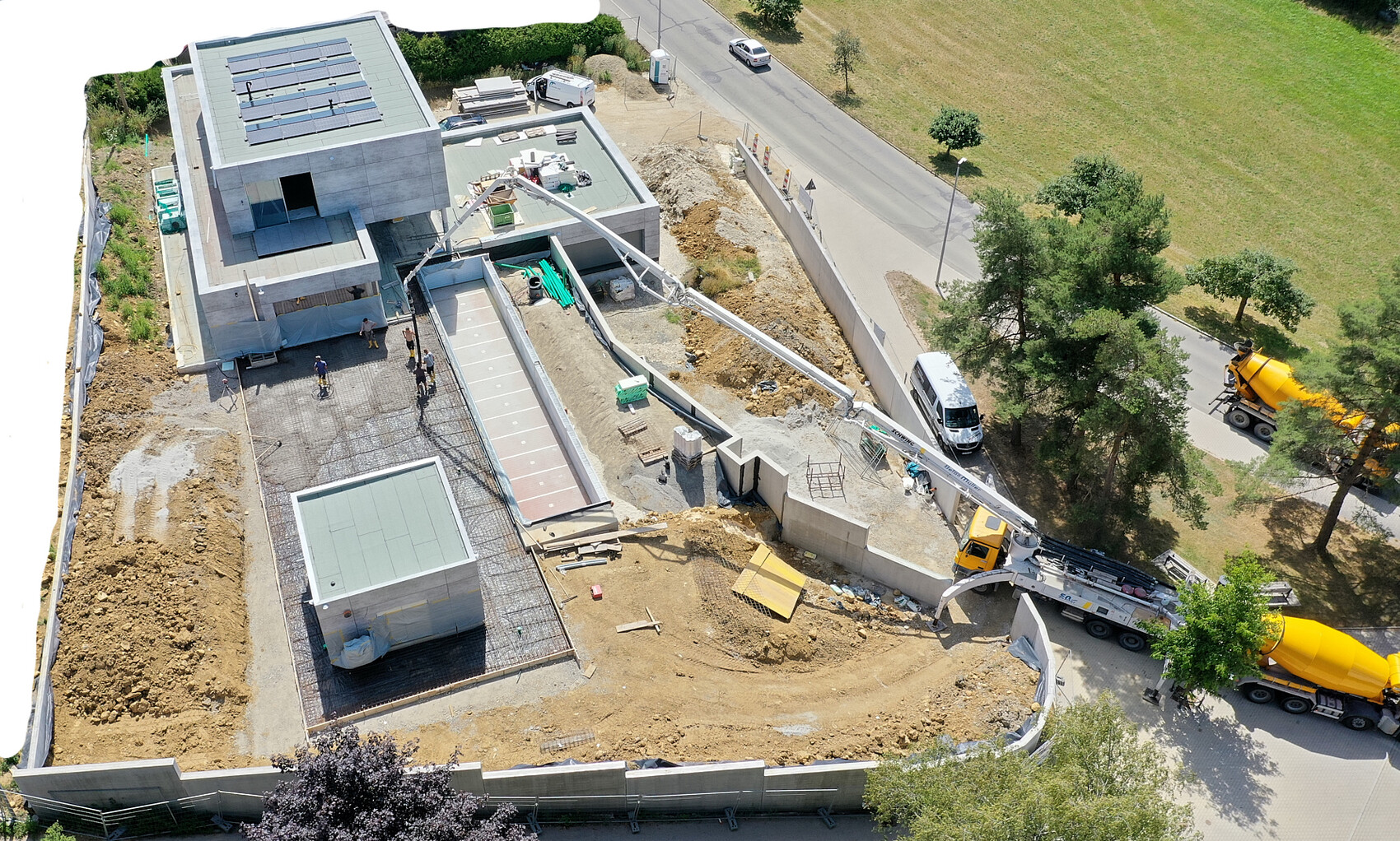 Mit Hilfe einer Betonpumpem wurde der Beton zu Terrasse gebracht