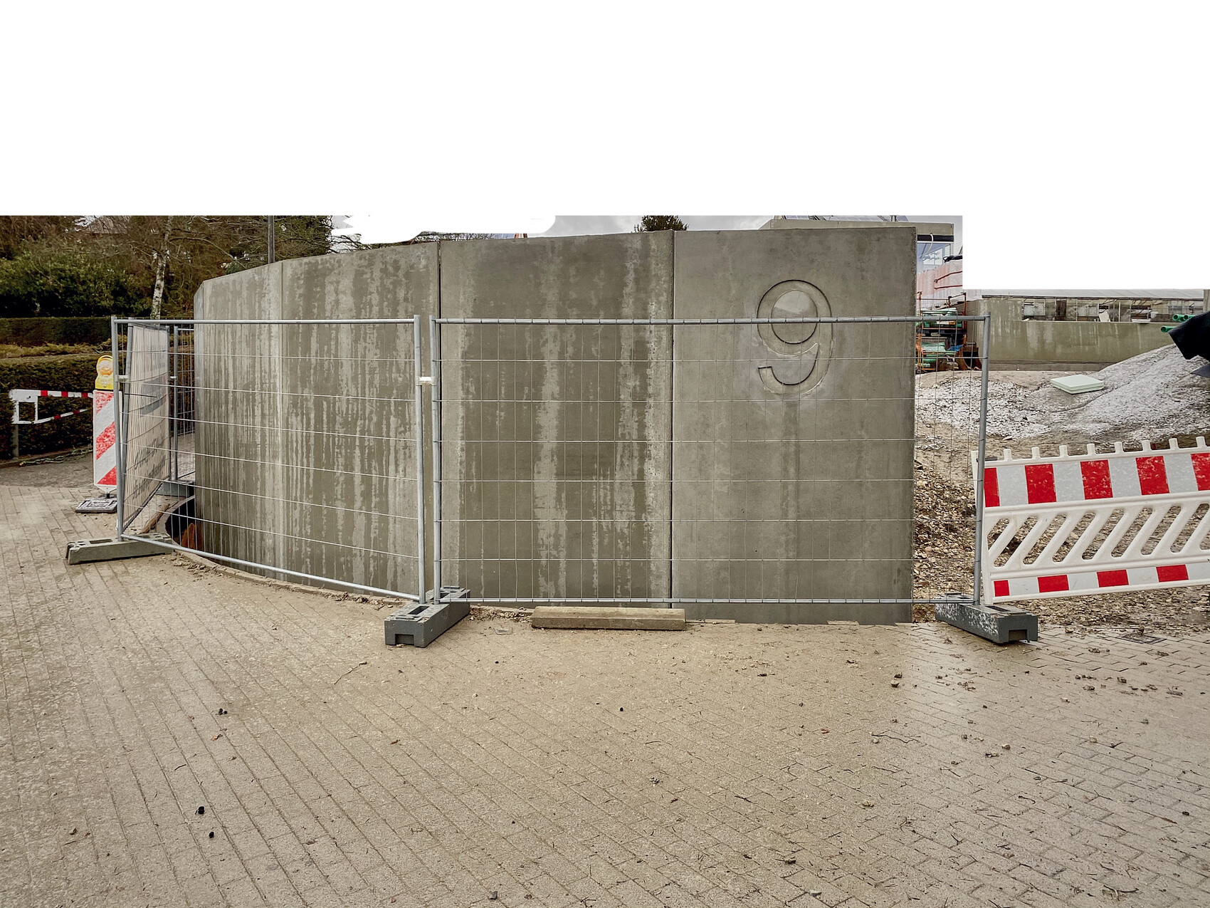 Die Tage war wieder schweres Gerät bei uns zugange. Der erste Teil unserer Einfriedung bzw. Stützmauer wurde gestellt.