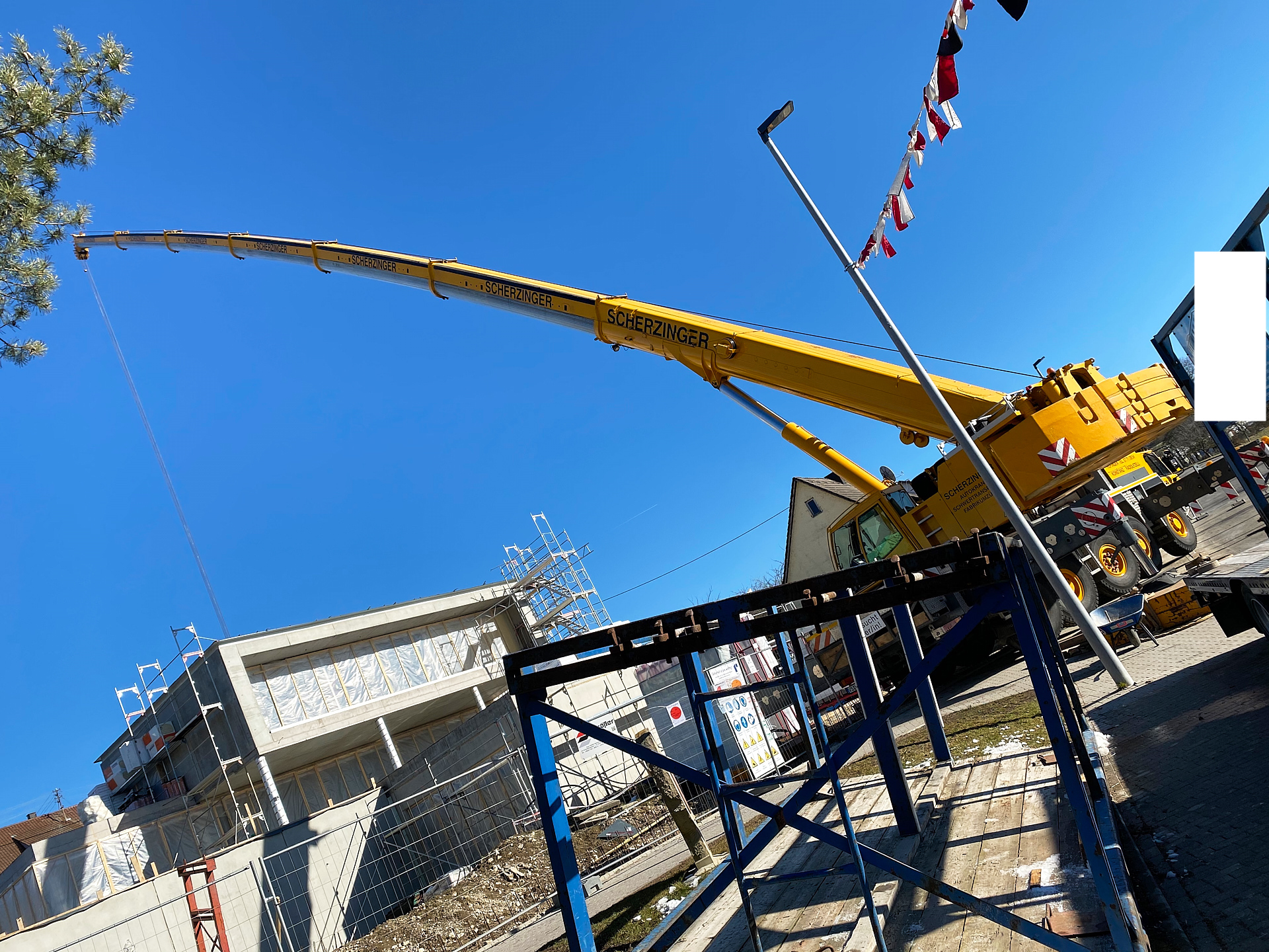 Da wir die Teile über das Haus und teilweise quer über das gesamte Grundstück hieven mussten wurde großes Gerät benötigt.