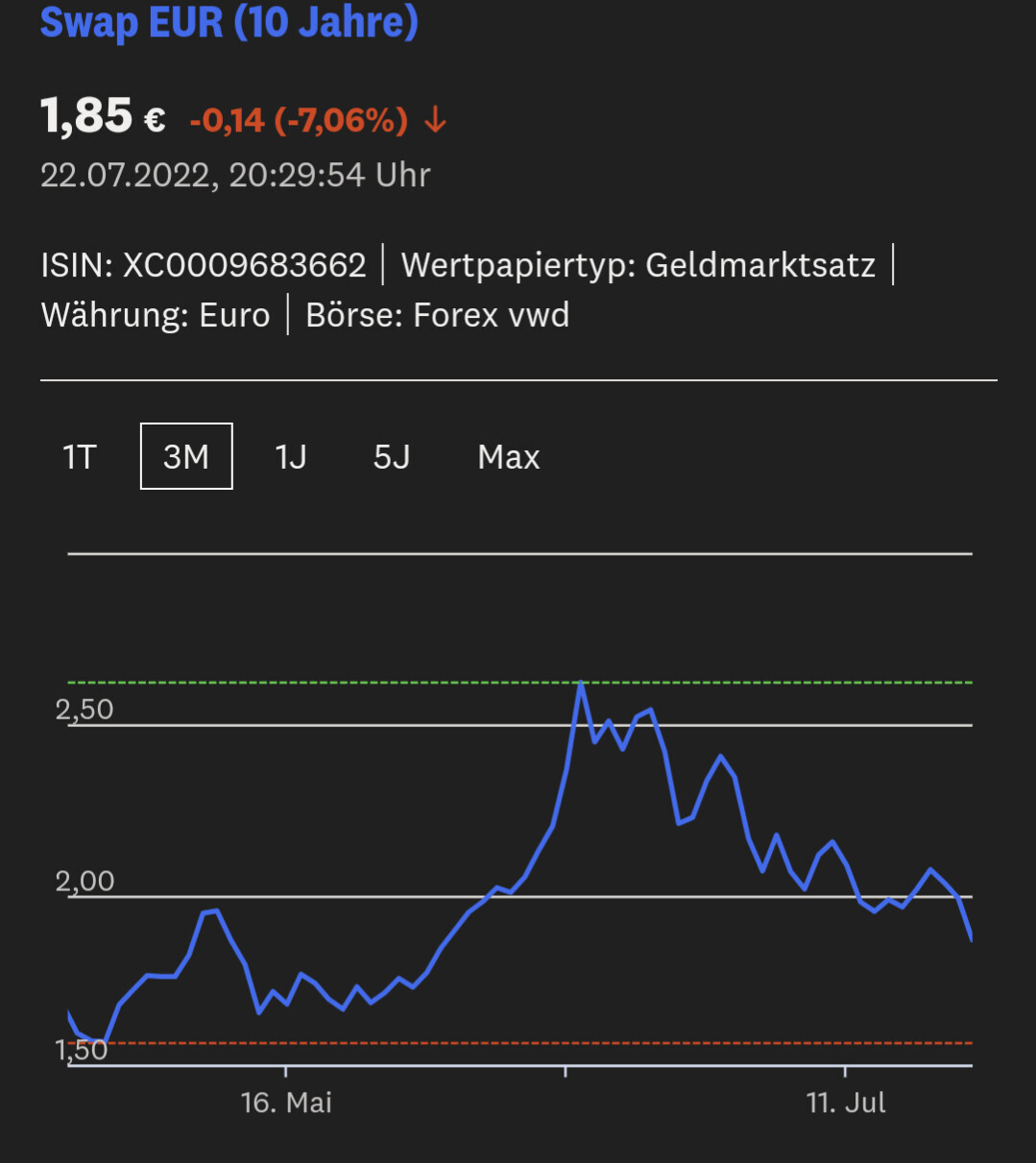 Swap EUR (10J): Kurs 1,85€ Änderung -0,14 (-7,06%), ISIN XC0009683662 3M-Chart.