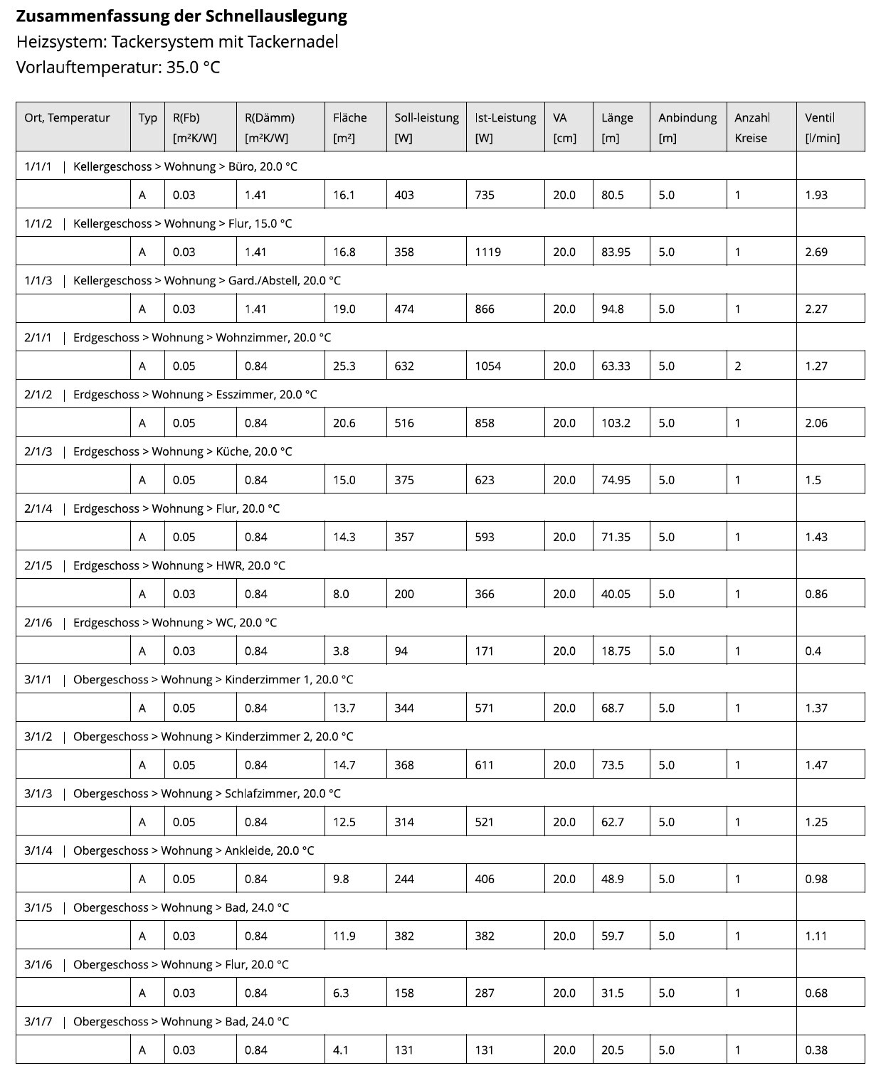 1) Ich verstehe es so, dass unter dem Punkt "Länge" die geplante Rohrlänge des Raumes angegeben ist. Wenn dort mehrere Heizkreise geplant werden, muss ich die "Länge" mit diesem Faktor multiplizieren. Stimmt das so?