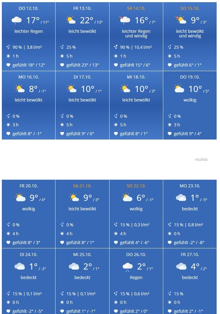 DankeBei uns ab 23.10. also gleiches Dilemma. Verbieten wird schwierig, ich werde - wie so oft, per Mail meine Bedenken äußern und auf die Verarbeitungshinweise des Herstellers verweisen. Das führte schon mehrmals in der Vergangenheit dazu, dass Termine geschoben wurden, wir aber zum Glück von Schäden verschont blieben (Mauern bei <0 Grad, Betonieren bei -2 Grad, Estrich begehen nach 18 Stunden, etc). Ob es dennoch „machbar“ wäre weil „hat bisher immer geklappt“ will ich einfach nicht herausfinden. Der Nachbar hat bei seiner Fassade das unpassende Wetter für diese Arbeiten nicht moniert und seine Fassade sieht dementsprechend auch aus. Die endgültige Quittung gibt’s dann meist ein paar Jahre später, so der Zufall will, wenn die Gewährleistung dann auch schon rum ist. Ich an deiner Stelle würde mich zumindest zu Wort melden und auf die Wettervorhersage verweisen und fragen ob das mit den Verarbeitungsrichtlinien des Putzherstellers vereinbar ist. Natürlich entsprechend freundlich formuliert und nicht Vorwurfsvoll wie ich das jetzt exemplarisch hier gemacht habe.