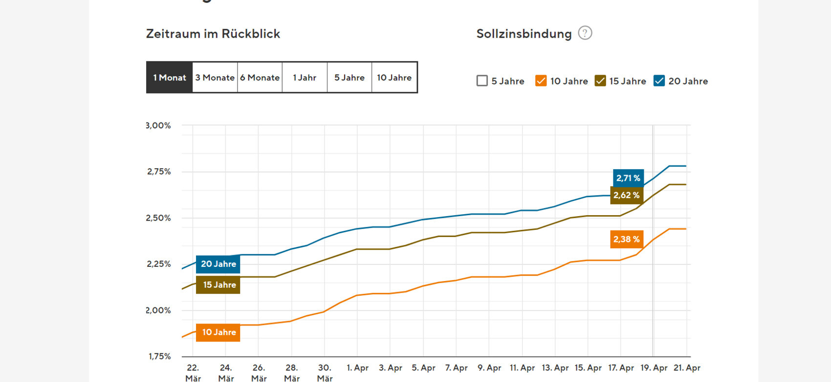 Ich erinnere mich hier an einige Threads im letzten Jahr, in denen einige laut gerufen haben, dass die Zinsen die nächsten Jahre auf gar keinen Fall steigen werden und deshalb sogar Leuten geraten haben maximal 10 Jahre Zinsbindung zu wählen...Ja, das war mir auch schon eingefallen. Ich bin glücklich über meine 20jährige Zinsbindung.Ähnliche Themen