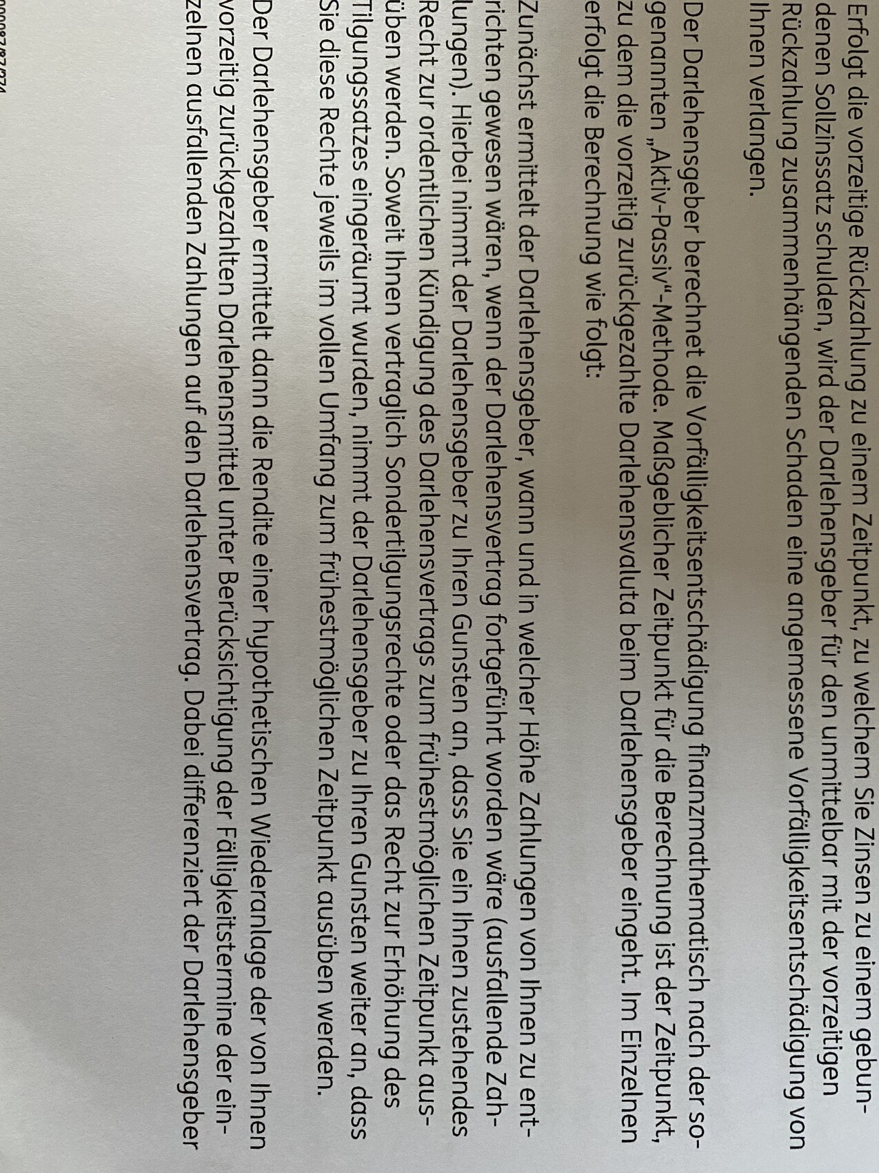 Ich finde die 5000 eigentlich gar nicht so verkehrt von der Bank. Man muss ja sehen, dass die einen bindenden Vertrag geschlossen hatten. Der Bank entstehen dadurch ja auch Bearbeitungskosten. Es entgeht ihnen bei der aktuellen Zinsentwicklung vermutlich kein Gewinn, das Geld müssen sie aber auch erst mal wieder verkauft kriegen, außerdem sind ja Vorfälligkeitsgebühren vertraglich geregelt, die 5k liegen da vermutlich drunter? Das weiß aber wohl nur der TE.Tatsächlich ist im Vertrag kein Prozentsatz oder Ähnliches angegeben. Für manche mögen die 5000€ viel sein, ich hatte schon fast mit dem 4-fachen gerechneten und bin daher einfach froh. Alles eine Sache der Sichtweise 😀