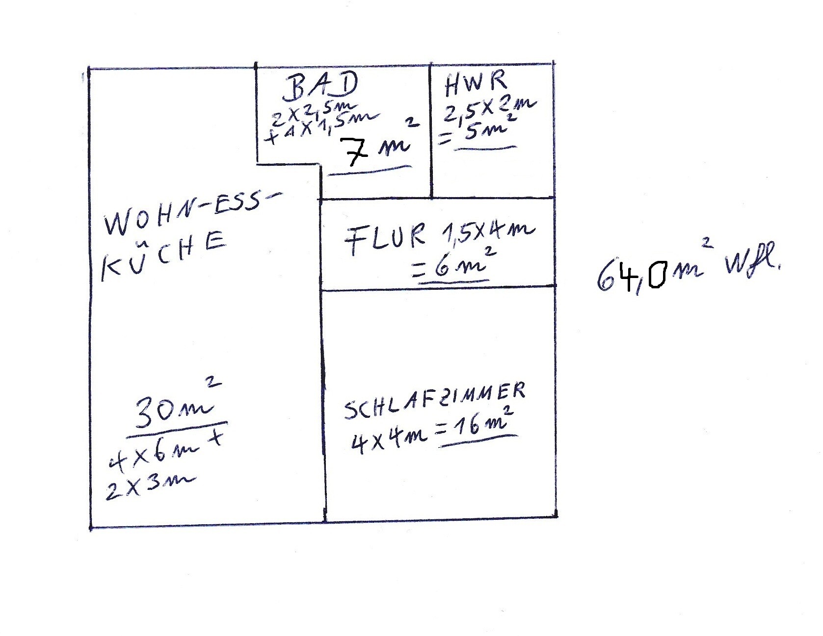 Stell doch mal Deine Entwürfe 50 und 65 qm hier ein, dann kann man die ja mal konkret verbessern. Was ich gerade als Datei auf dem Rechner habe, ist die 2-Raum-Aufteilung eines 64m²-Hauses: (8X8m, gerechnet ohne Flächenverluste durch Wände)...Im Flur hat man 3 Türen: zur Wohn-Ess-Küche, zum Bad und zum Schlafzimmer. Der Hauswirtschaftsraum ist vom Bad erreichbar. Die Küche befindet sich quasi "oben links". Im Bad "links oben" befindet sich eine Bodenebene Dusche (Glaswand rechts), rechts daneben ist die Toilette, dann kommt ein Fenster und dann das Waschbecken usw. ...Ob 64oder 65m², macht ja jetzt von der Planung her keinen Unterschied. ....Die 50m²-Variante: Ist etwas größer als 7X7m, also eine geschrumpfte 64m²-Variante. Bis auf 2 Unterschiede: Bad + Hauswirtschaftsraum sind 1 Raum (ca. 10,5 m²) und der Schlafbereich ist durch den Wohnbereich zu erreichen, durch eine breite Schiebetür und nicht durch den Flur. Durch das Öffnen der Schiebetür entsteht ein 35m²-Bereich (Kochen/Wohnen/Schlafen), der für ein möglichst gutes Raumgefühl sorgen soll, trotz der sehr geringen Gesamtwohnfläche. Mir ist es sehr wichtig eine möglichst offene Raumaufteilung zu haben, obwohl ich schon sagen muss, dass diese "loftähnliche" offene Variante schon die extremste ist. ...